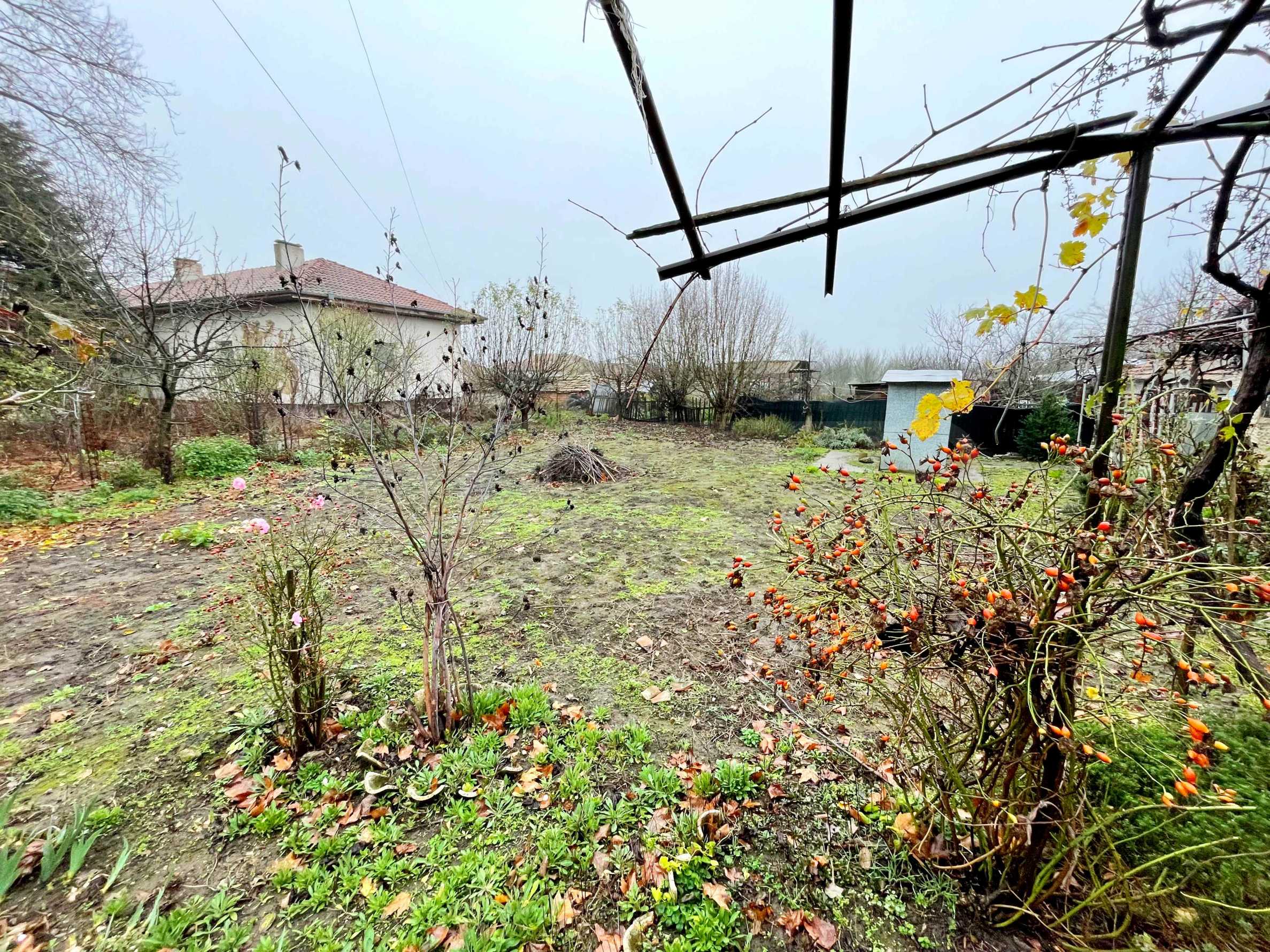 Der Garten ist regelmäßig geformt, eben und hat eine Fläche von 1100 m². Er ist mit Zierpflanzen und mehreren Obstbäumen bepflanzt.