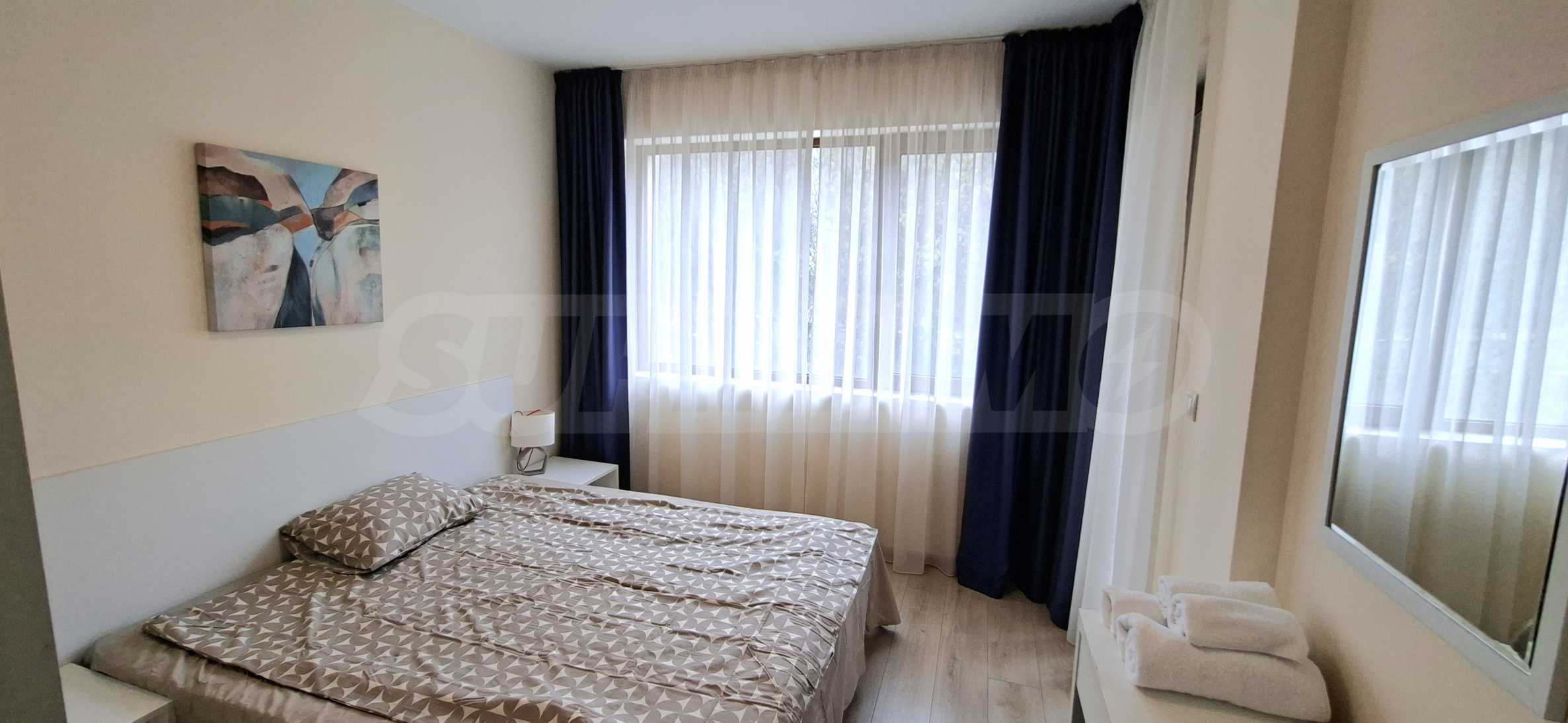 Der Strand hier ist einen Kilometer lang und nur eine Gehminute von der Anlage entfernt. In unmittelbarer Nähe befindet sich der üppig grüne Asparuhovo-Park. Geschäfte, Restaurants und alle Annehmlichkeiten der Umgebung sind schnell und bequem zu erreichen.
