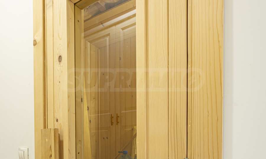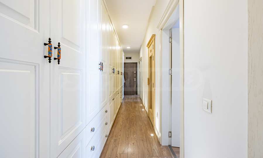 Die Wohnung empfängt Sie mit einem breiten Eingangsbereich, der mit einem achttürigen Kleiderschrank ausgestattet ist.