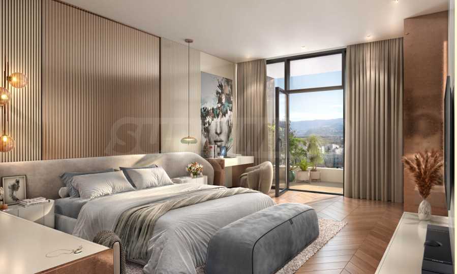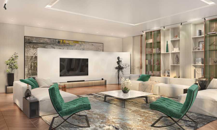 Die 172,21 m² große Wohnung befindet sich im 15. Stock und bietet einen beeindruckenden Panoramablick auf das Vitosha-Gebirge, den Balkan und die Stadt. Dank ihrer Südausrichtung ist die Wohnung den ganzen Tag über lichtdurchflutet.