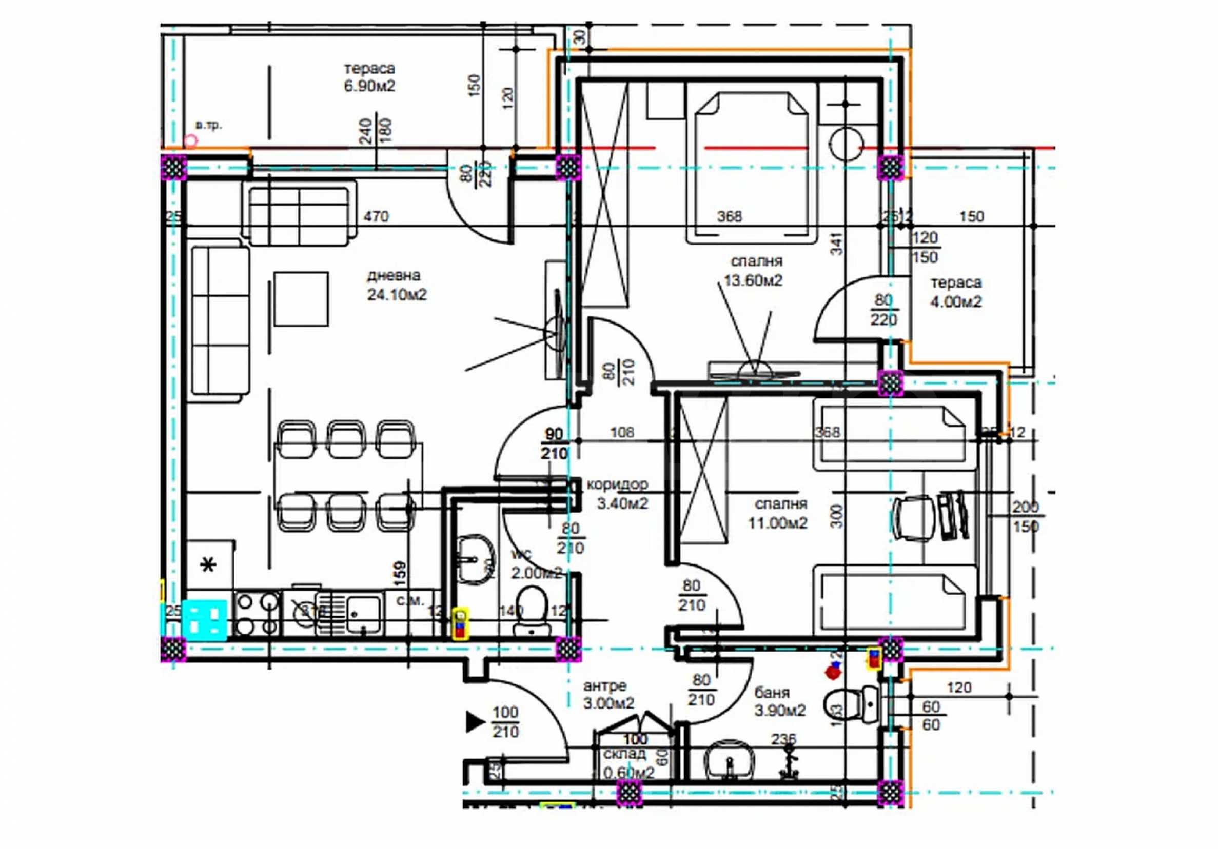 • Konstruktion - monolithische Stahlbetonkonstruktion mit 25 cm dicken Außenwänden aus Ziegelstein mit effektiver Wärmedämmung;