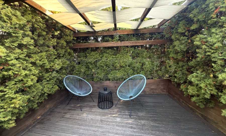 Das Highlight des Penthouses ist der Garten im obersten Stockwerk – ein äußerst seltener Vorteil in zentraler Lage, der Privatsphäre, Entspannung und eine eigene grüne Oase über dem Stadtleben bietet. Zusätzlich gibt es eine großzügige Terrasse im ersten Stock.