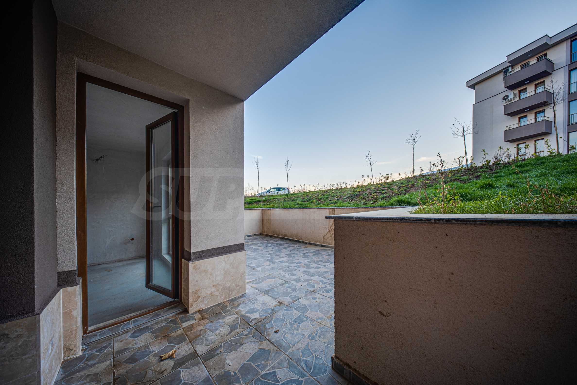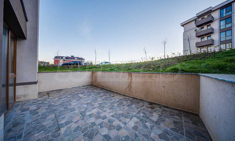 Wir bieten zum Verkauf eine Einzimmerwohnung mit Hof im Erdgeschoss eines Neubaus mit Act 16, Tiefgarage und Doppelparkplatz im Stadtteil "Vitosha" in Sofia an.