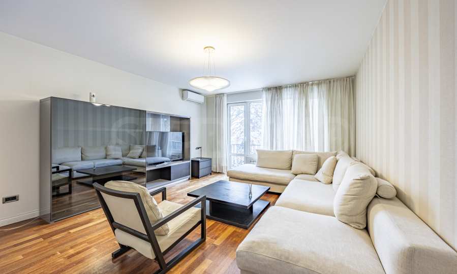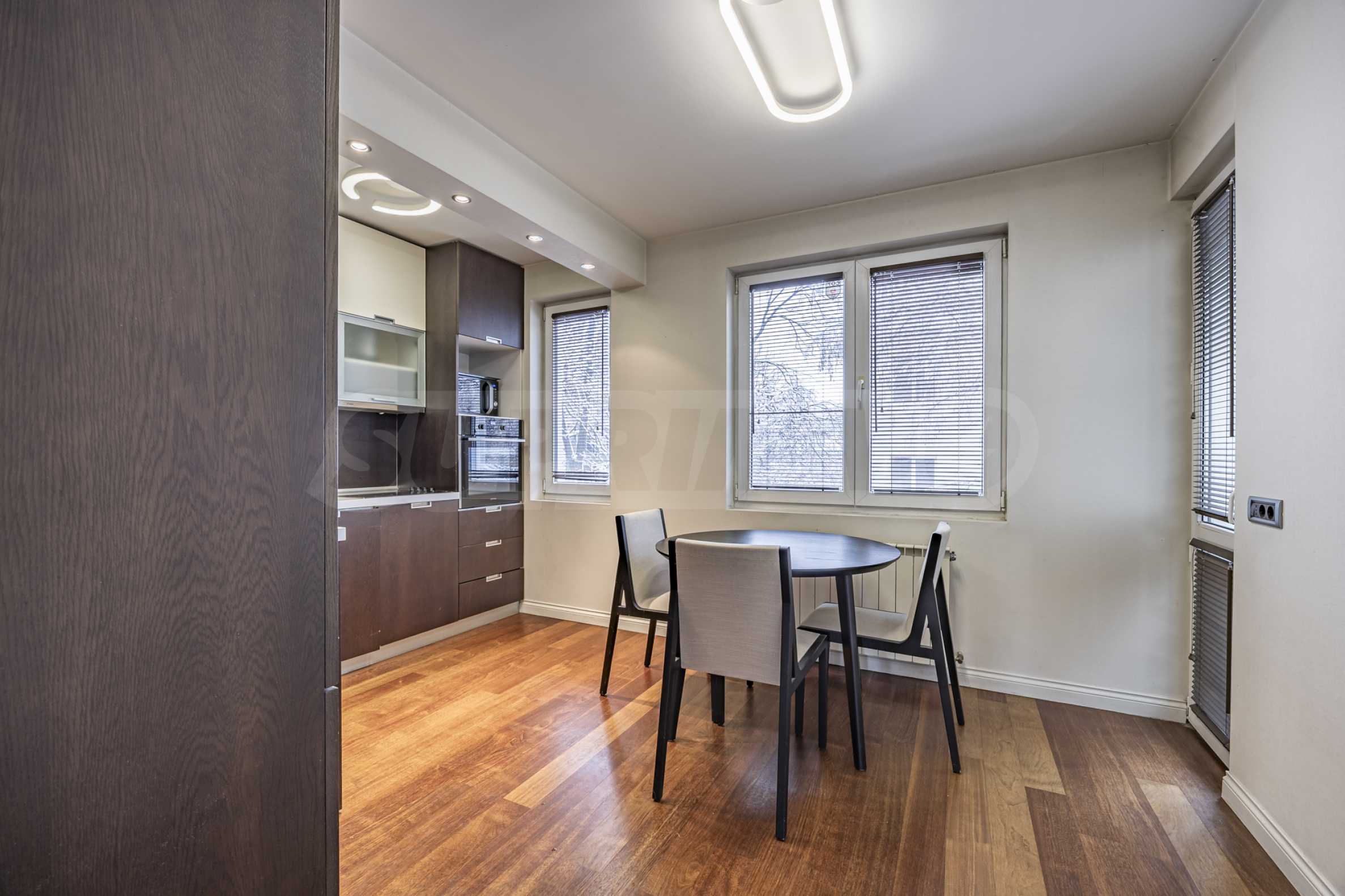 Wir präsentieren Ihnen eine modern eingerichtete Zweizimmerwohnung zur Miete in exklusiver Lage im Zentrum von Sofia, nur wenige Meter von der Universität Sofia und nur 2 Gehminuten von der U-Bahn-Station entfernt.