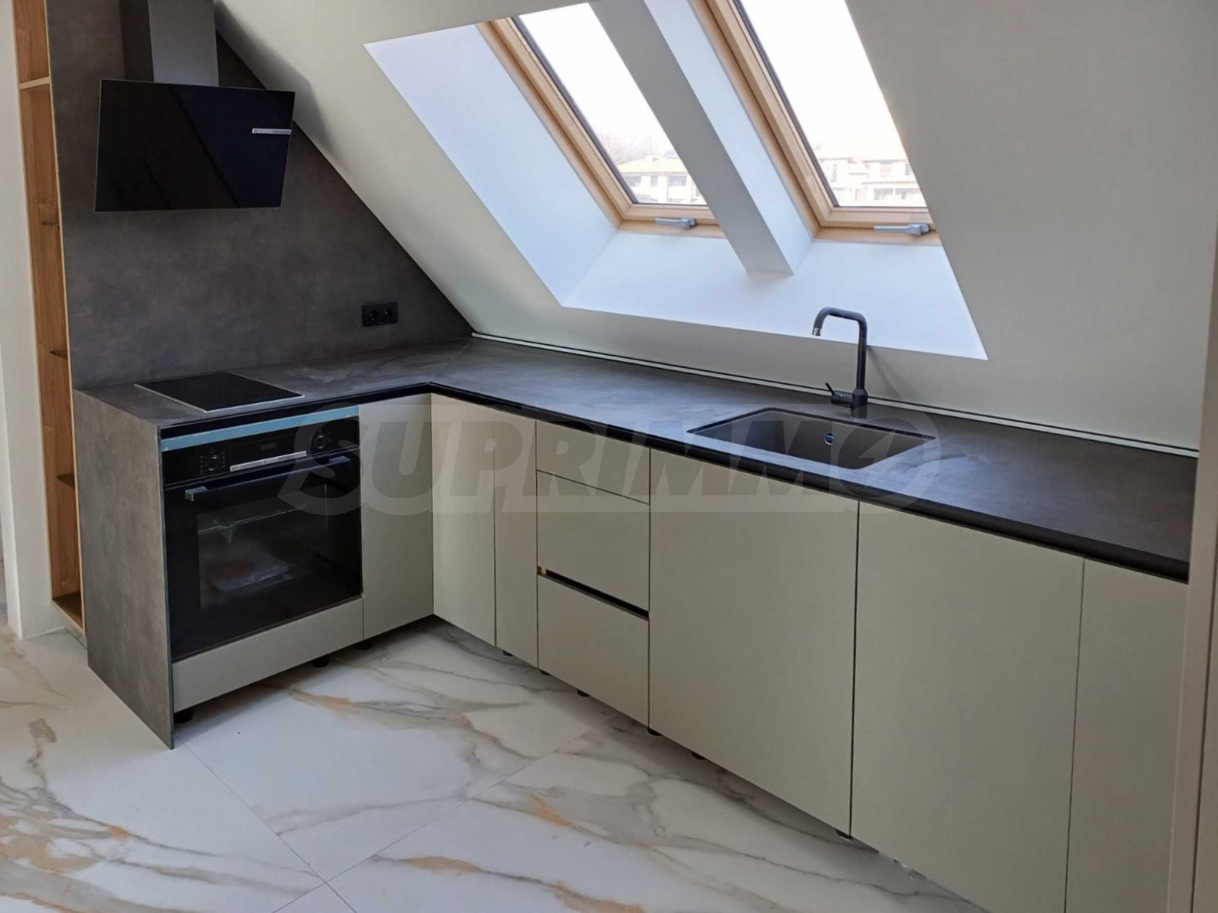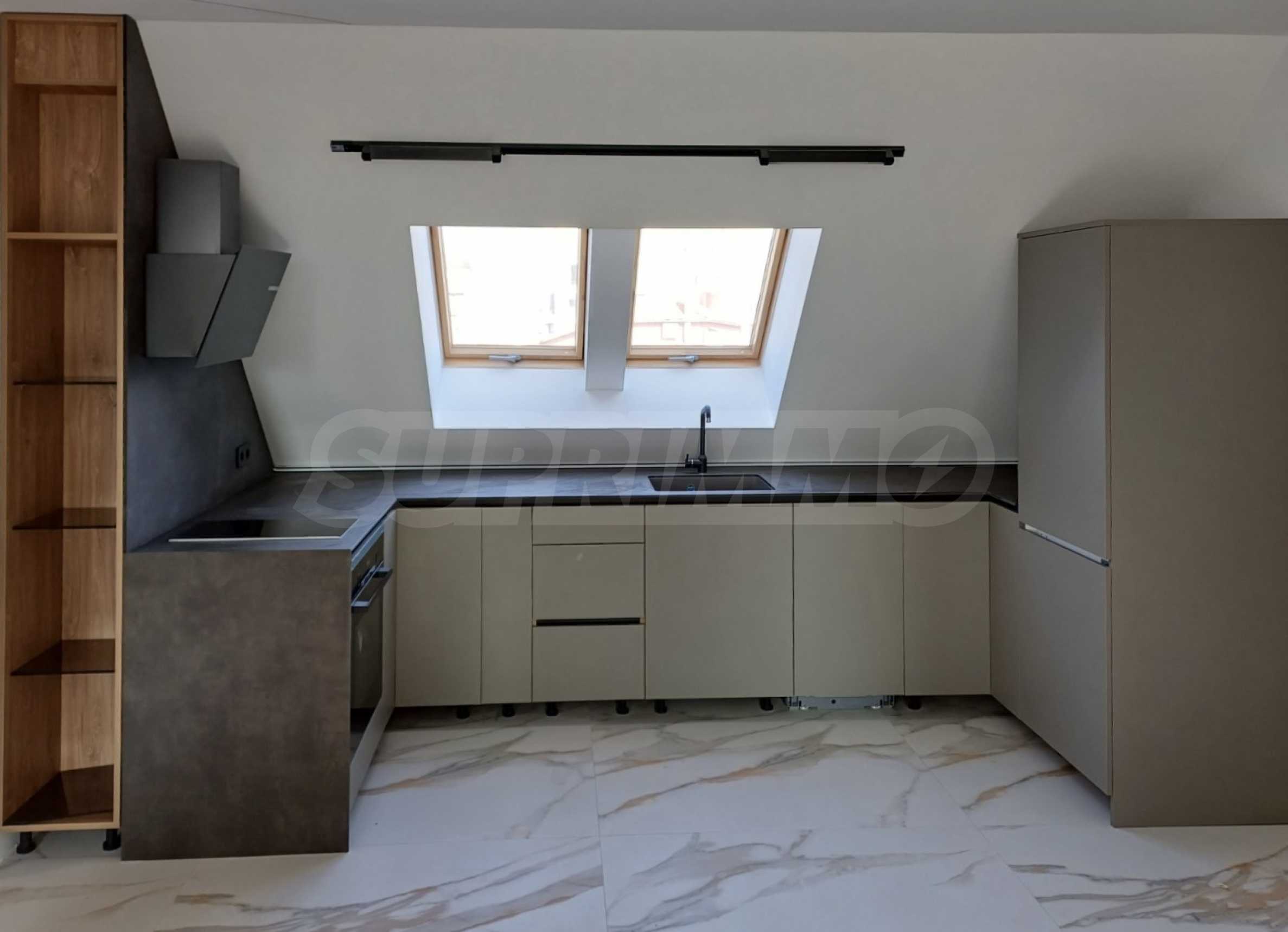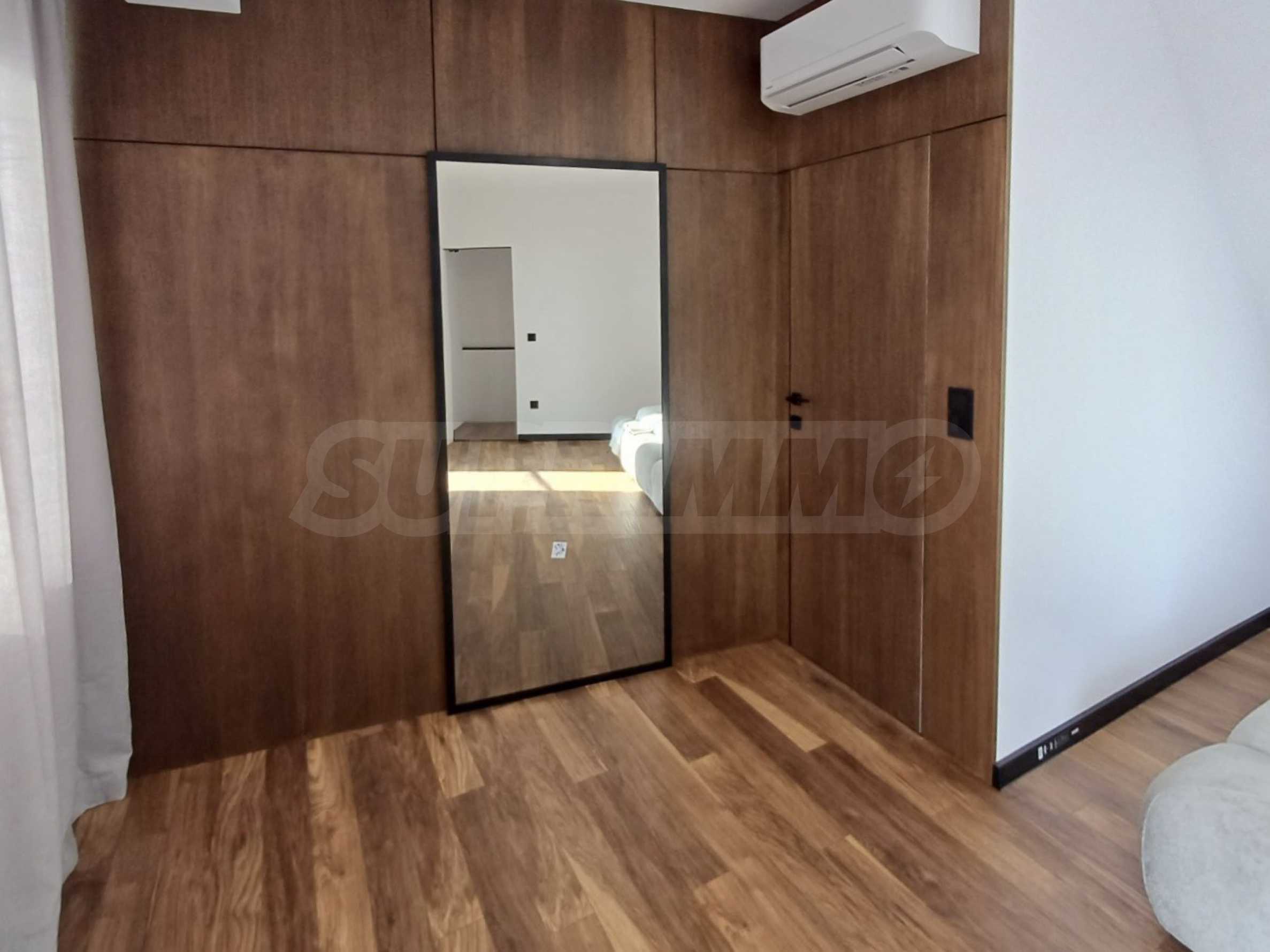 Die Wohnung befindet sich im vierten Stock eines modernen Gebäudes und bietet zeitgemäßen Wohnraum mit außergewöhnlicher Liebe zum Detail, Funktionalität und Komfort. Die Maisonette-Wohnung liegt in einem Neubau eines renommierten Bauträgers. Sie erstreckt sich über zwei Ebenen, ist nach Süden ausgerichtet und bietet einen Panoramablick auf das Vitosha-Gebirge, was für hervorragendes Tageslicht und ein großzügiges Raumgefühl sorgt. Die Wohnung ist komplett möbliert und mit ausgewählten Materialien führender europäischer Hersteller ausgestattet.
