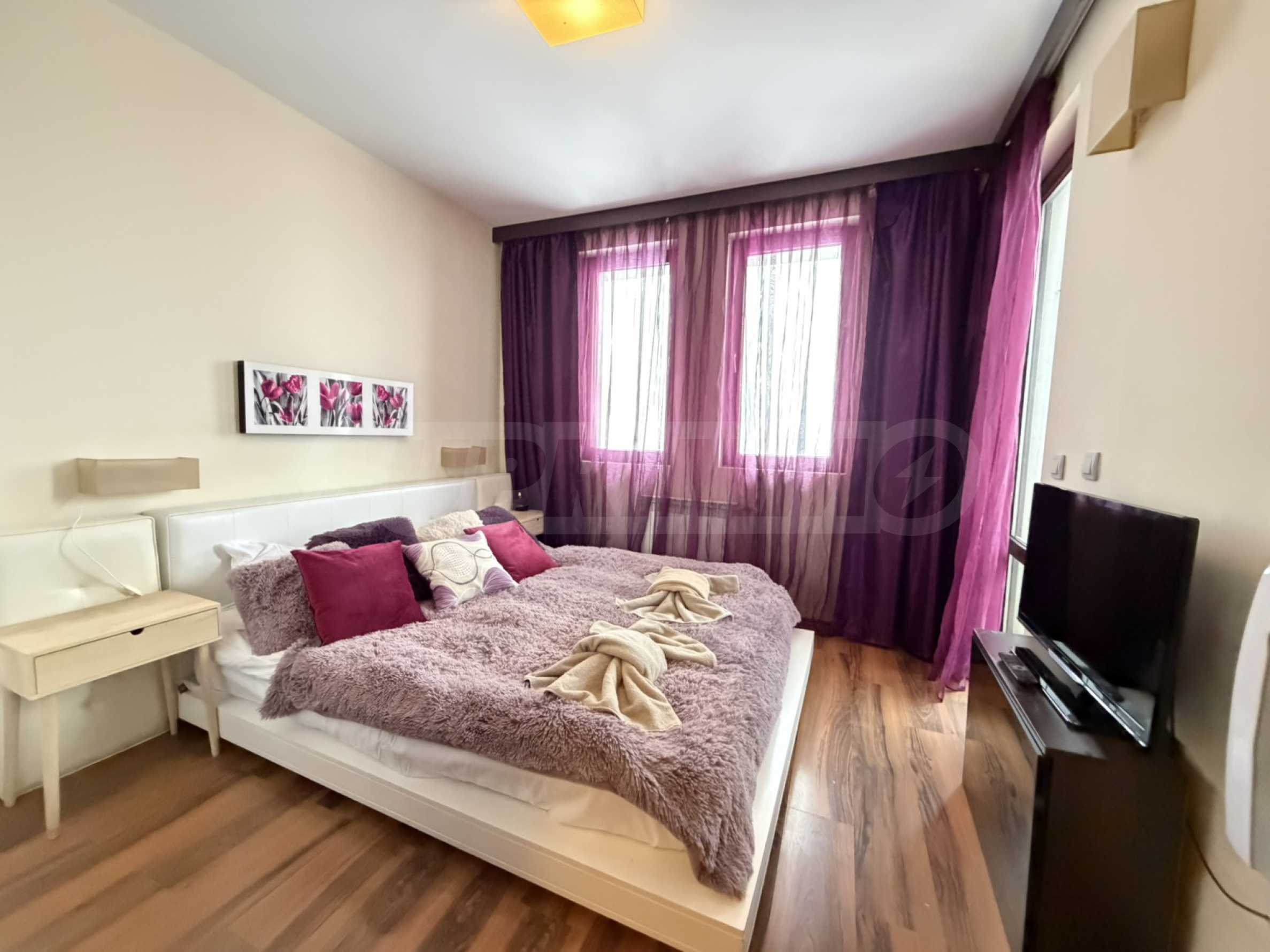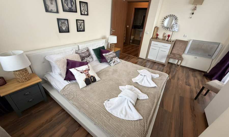 Wir präsentieren Ihnen eine komplett möblierte Zweizimmerwohnung im Komplex "St. Georgi Ski and SPA", die hervorragende Bedingungen für ganzjährige Erholung, Entspannung und Investition bietet.