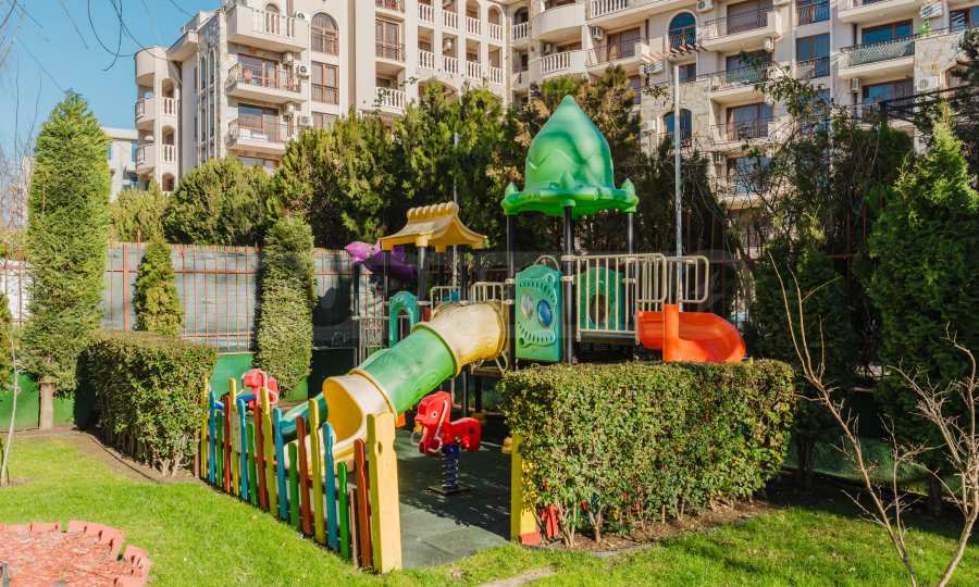 Wir bieten Ihnen ein Apartment mit einem Schlafzimmer in einem modernen Komplex mit eleganten Ferienwohnungen im Zentrum von Sonnenstrand zum Kauf an.