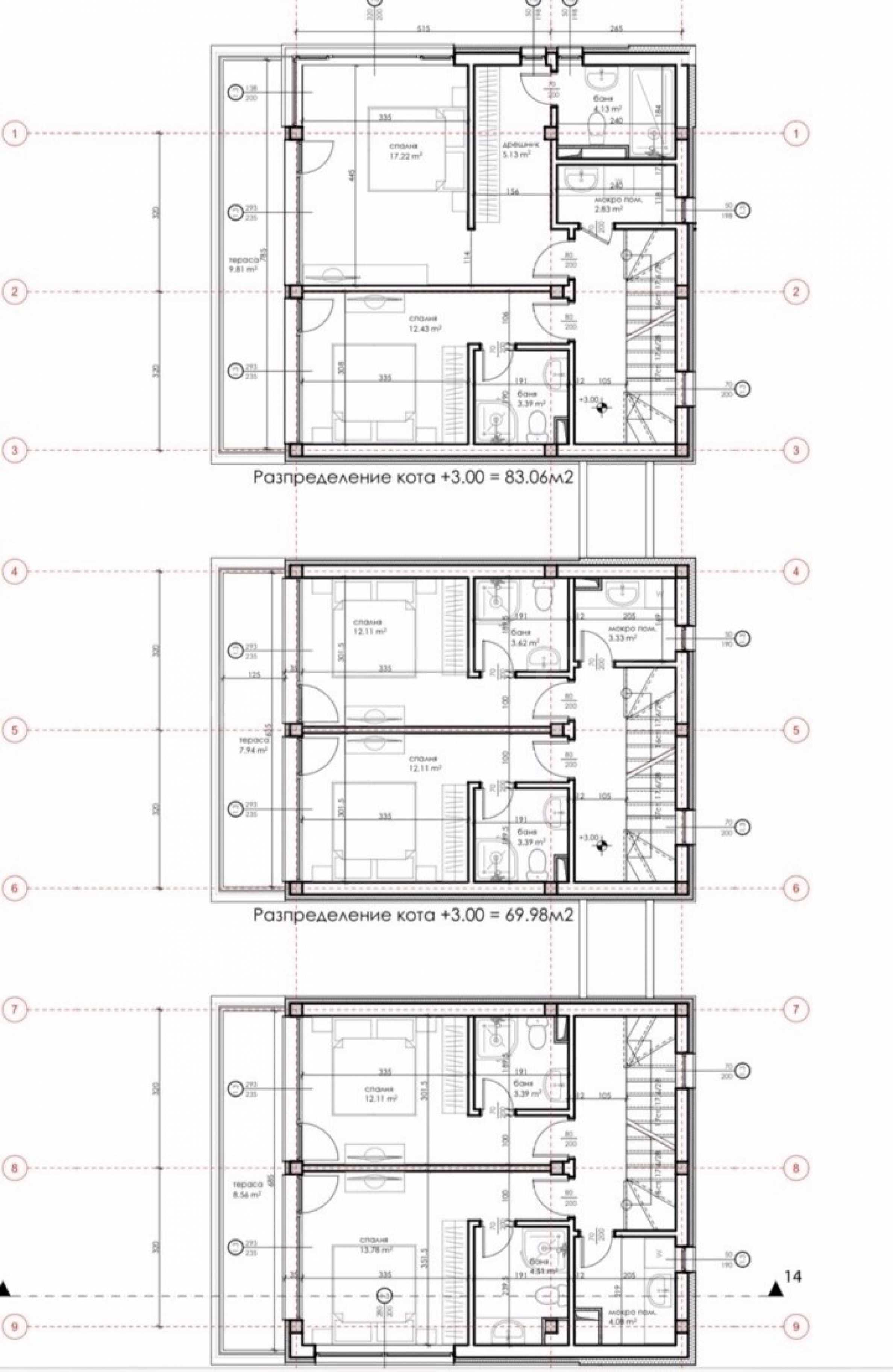 • 3. Etage: Dachterrasse mit einer Fläche von 83 m² und Meerblick.