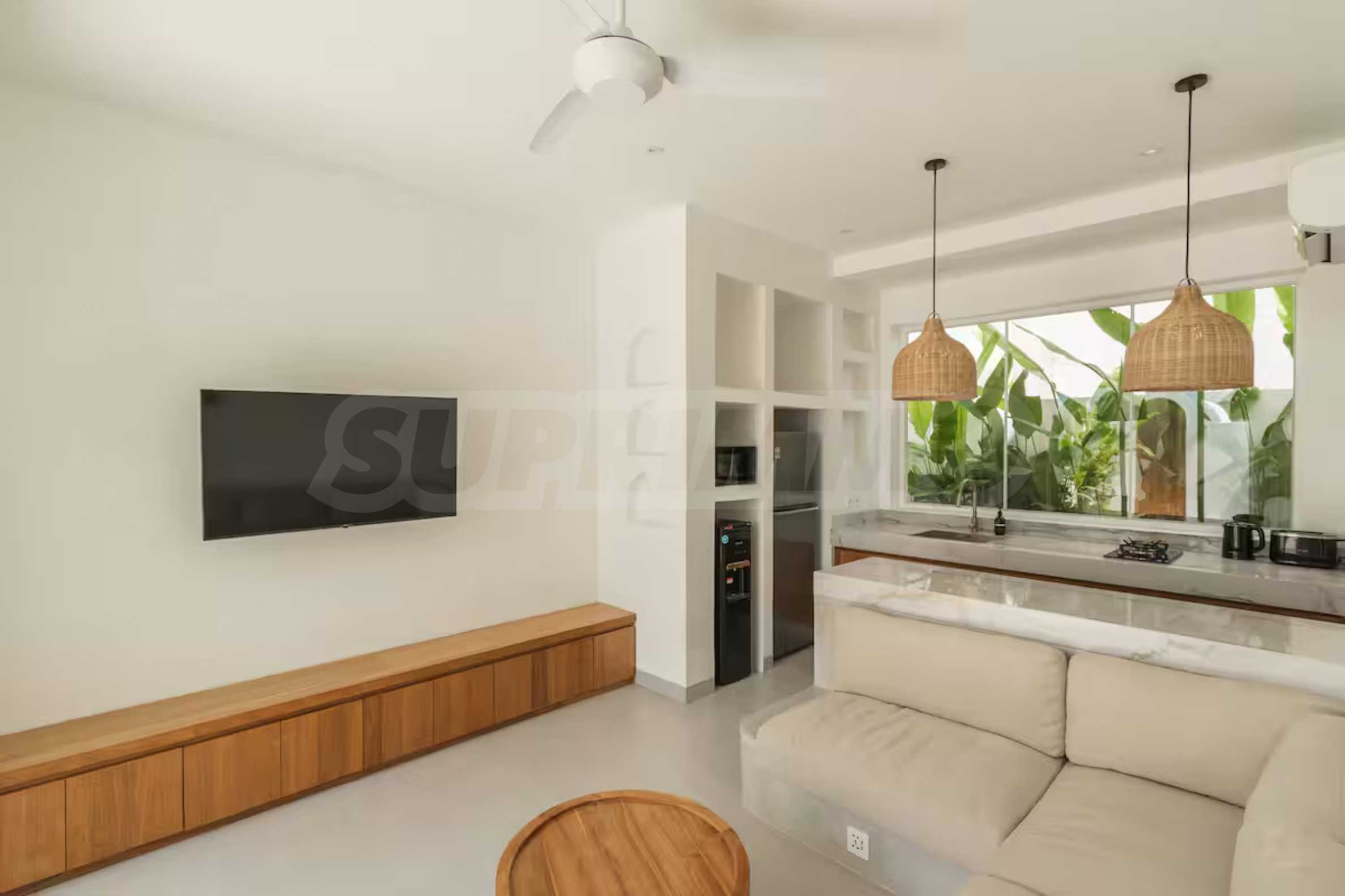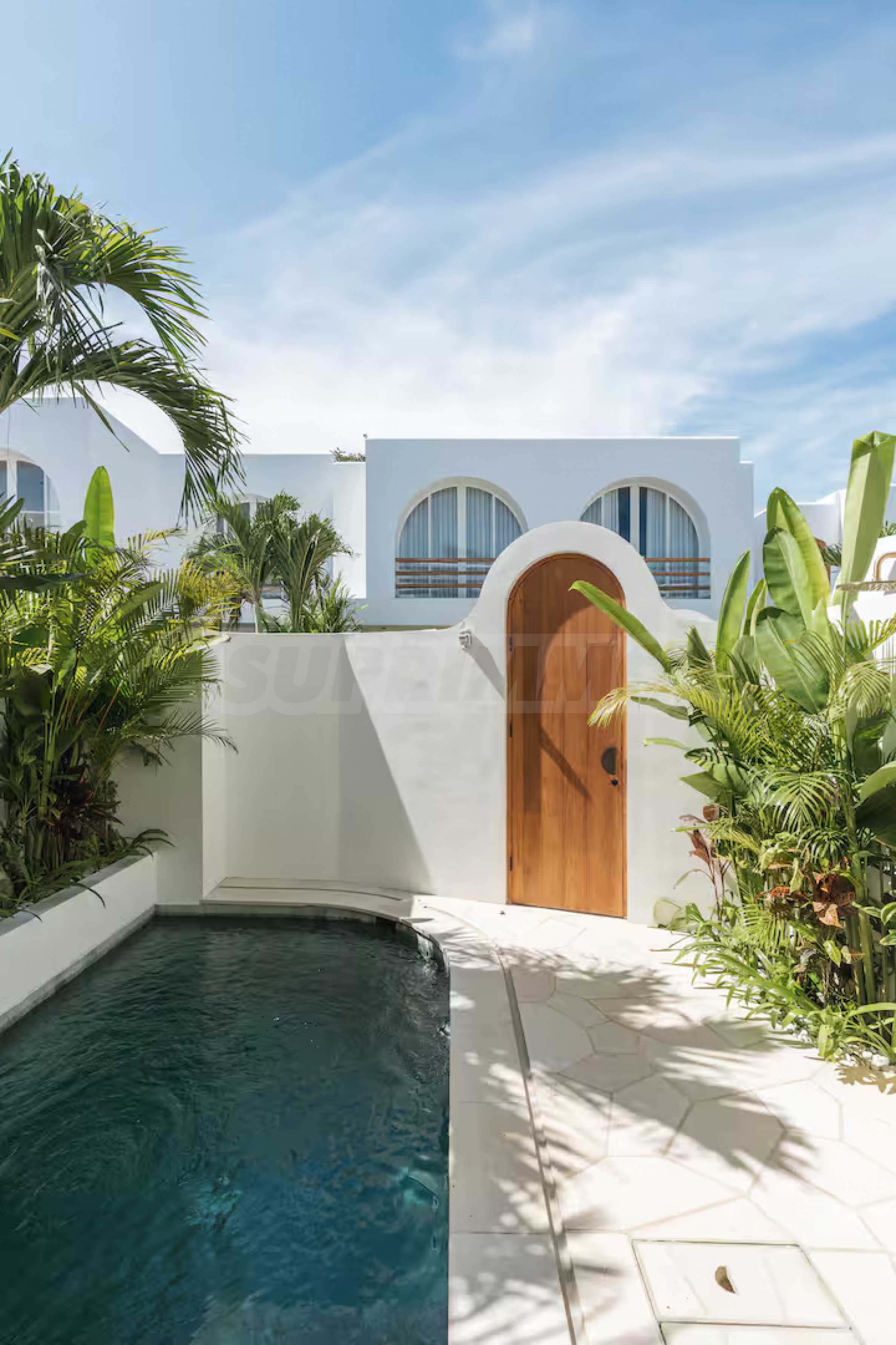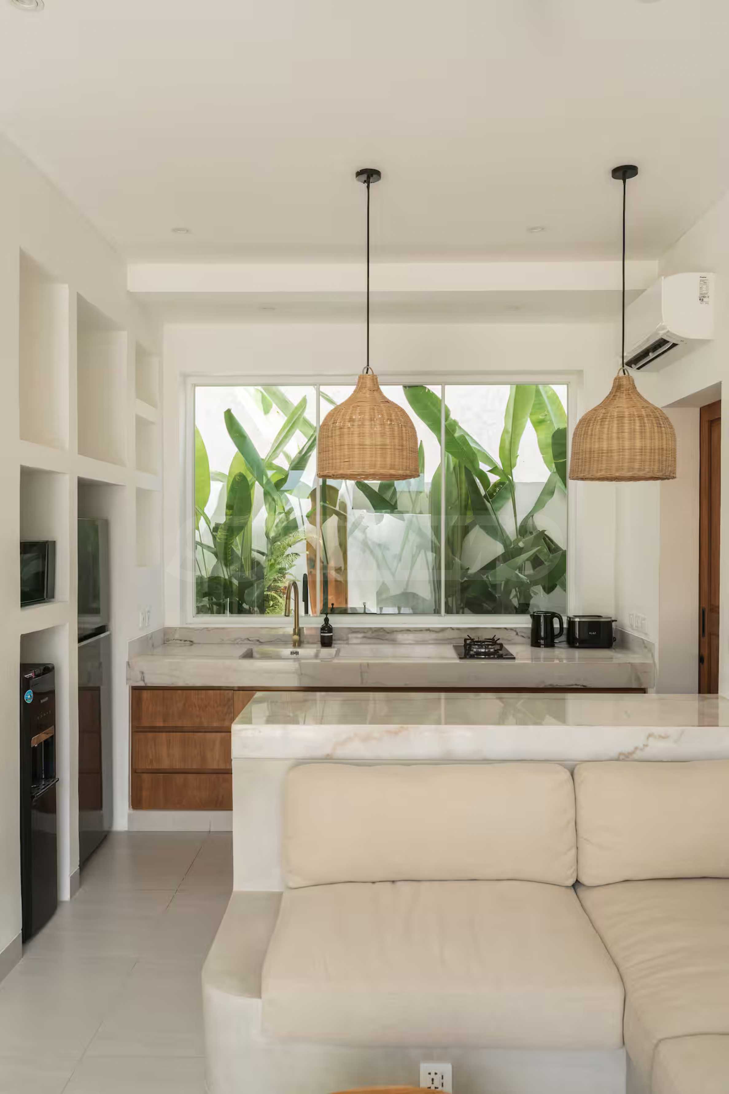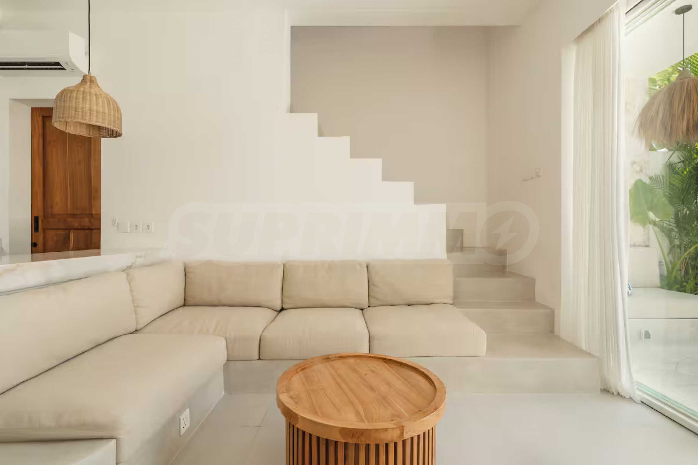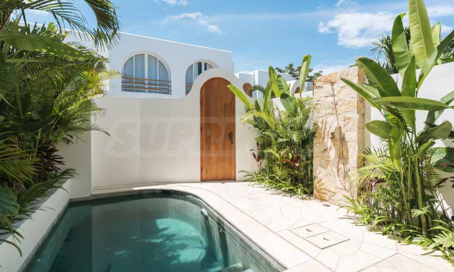 Das Anwesen vereint mediterranen Charme mit minimalistischer Eleganz: Der helle, offene Wohnbereich geht fließend in einen privaten Innenhof mit erfrischendem Tauchbecken über. Polierte Betonböden, weiße Wände, üppiges tropisches Grün und natürliche Materialien wie Rattan und Holz schaffen eine entspannte und zugleich stilvolle Atmosphäre. Ein gemütliches Schlafzimmer, eine funktionale Küche und ein modernes Badezimmer runden dieses elegant gestaltete Zuhause ab, das sich sowohl für dauerhaftes Wohnen als auch für die Kurzzeitvermietung eignet.