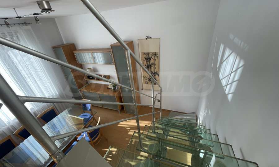 Wir bieten Ihnen eine geräumige Maisonette-Wohnung mit drei Schlafzimmern zum Kauf an. Die Wohnung befindet sich in einer äußerst verkehrsgünstigen Lage, nur wenige Meter von der Fußgängerzone des Vitosha-Boulevards entfernt, in einem der begehrtesten und prestigeträchtigsten Viertel der Hauptstadt. Die Metrostation NDK ist in etwa drei Gehminuten erreichbar, und zahlreiche Restaurants, Geschäfte und Einrichtungen des täglichen Bedarfs befinden sich in unmittelbarer Nähe.