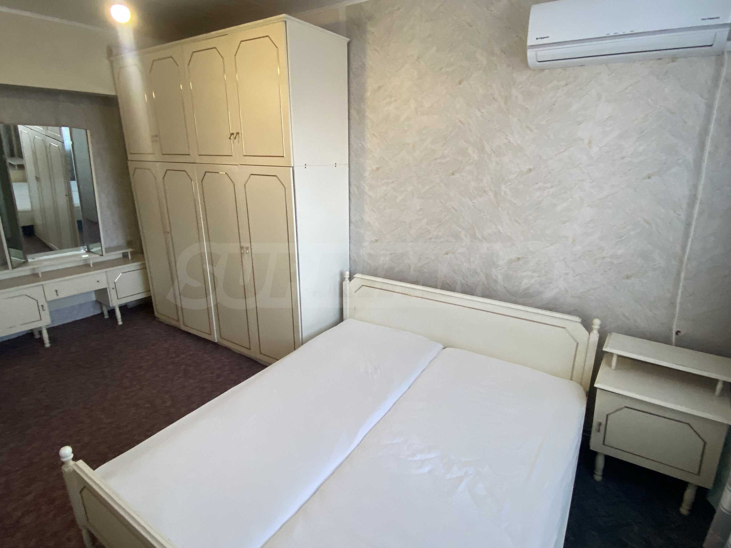 Die Wohnung ist gut gepflegt und in einwandfreiem technischen Zustand. Die Fenster wurden durch PVC-Fenster ersetzt und zwei Klimaanlagen installiert. Das Gebäude verfügt über einen Aufzug und eine Zugangskontrolle, was zum Komfort und zur Sicherheit der Bewohner beiträgt.