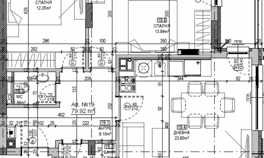 Das konkrete Angebot bezieht sich auf eine Dreizimmerwohnung Nr. 19 im dritten Stock, die sich aufteilt in eine Eingangshalle, ein geräumiges Wohnzimmer mit Kochnische, zwei Schlafzimmer, ein Badezimmer mit WC, ein separates WC, einen Balkon, eine Eingangshalle und eine Gesamtfläche von 97,36 m².