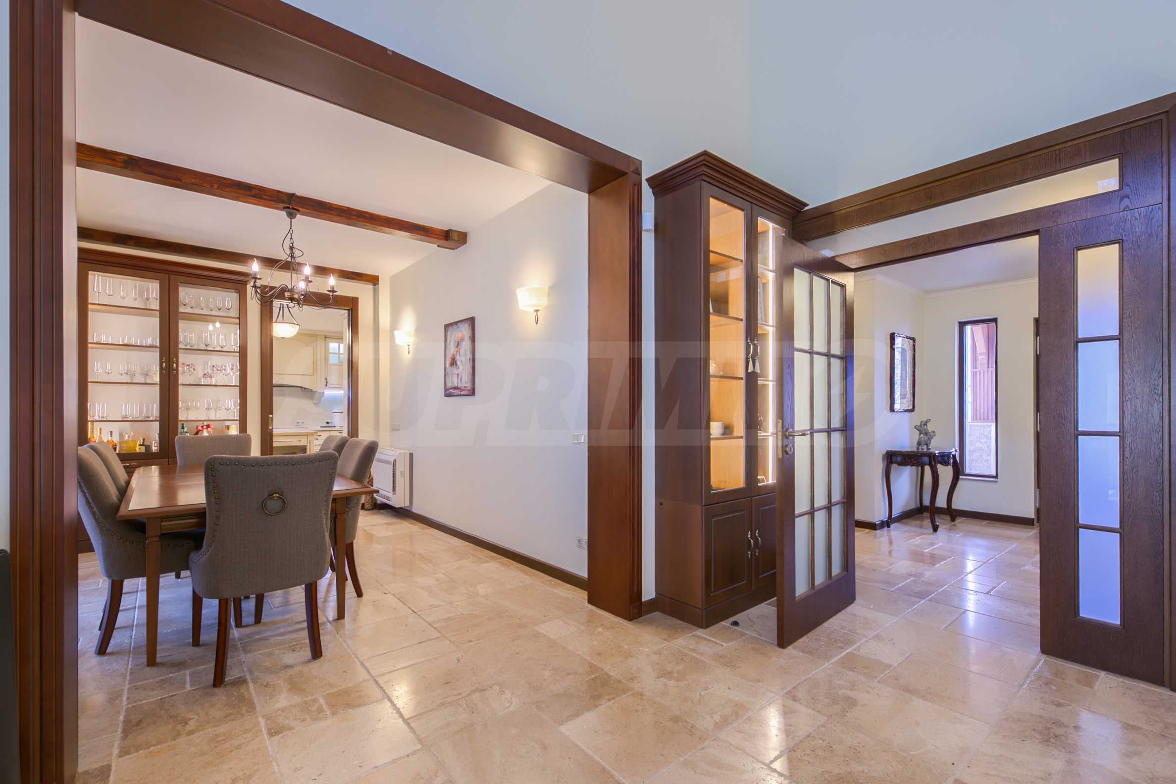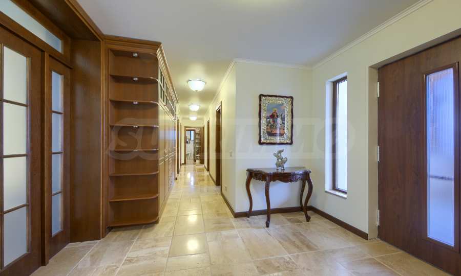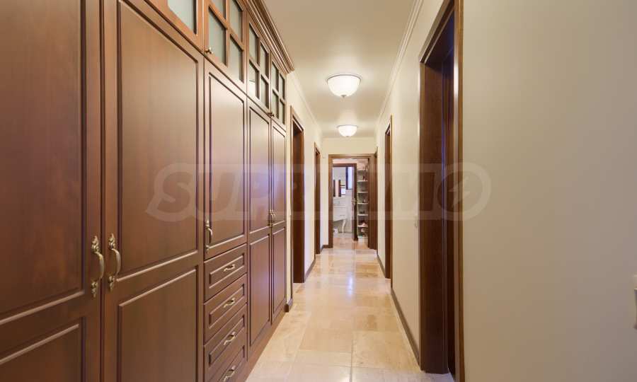 Der großzügige Flur ist stilvoll mit maßgefertigten Designerschränken ausgestattet, die Ästhetik und Funktionalität vereinen. Wohnzimmer und Aufenthaltsraum sind geräumig und gemütlich und bieten separate Bereiche zum Entspannen und Erholen.