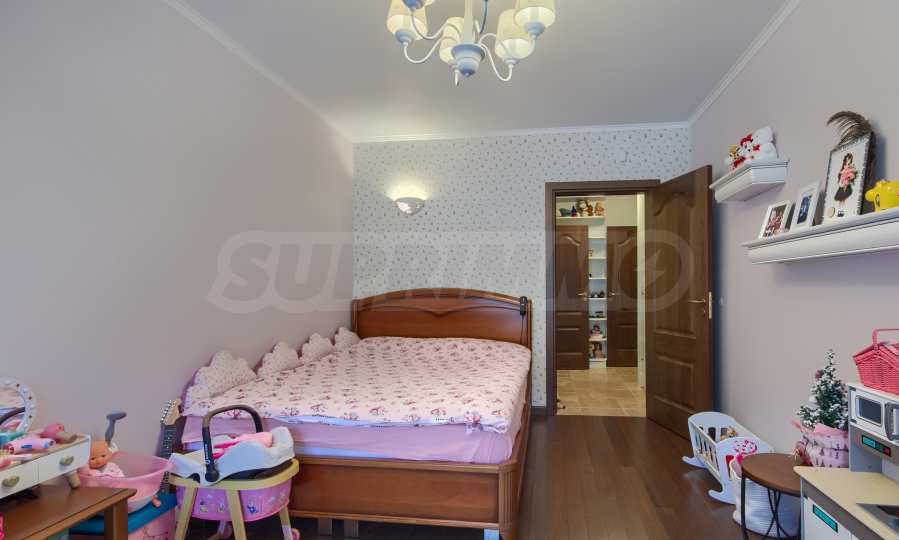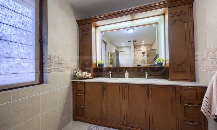 Das Anwesen verfügt über drei luxuriöse Schlafzimmer mit jeweils 18 m², jedes mit eigenem Bad und WC, was maximale Privatsphäre gewährleistet. Ein separater Kleiderschrank sorgt zudem für optimale Raumaufteilung.