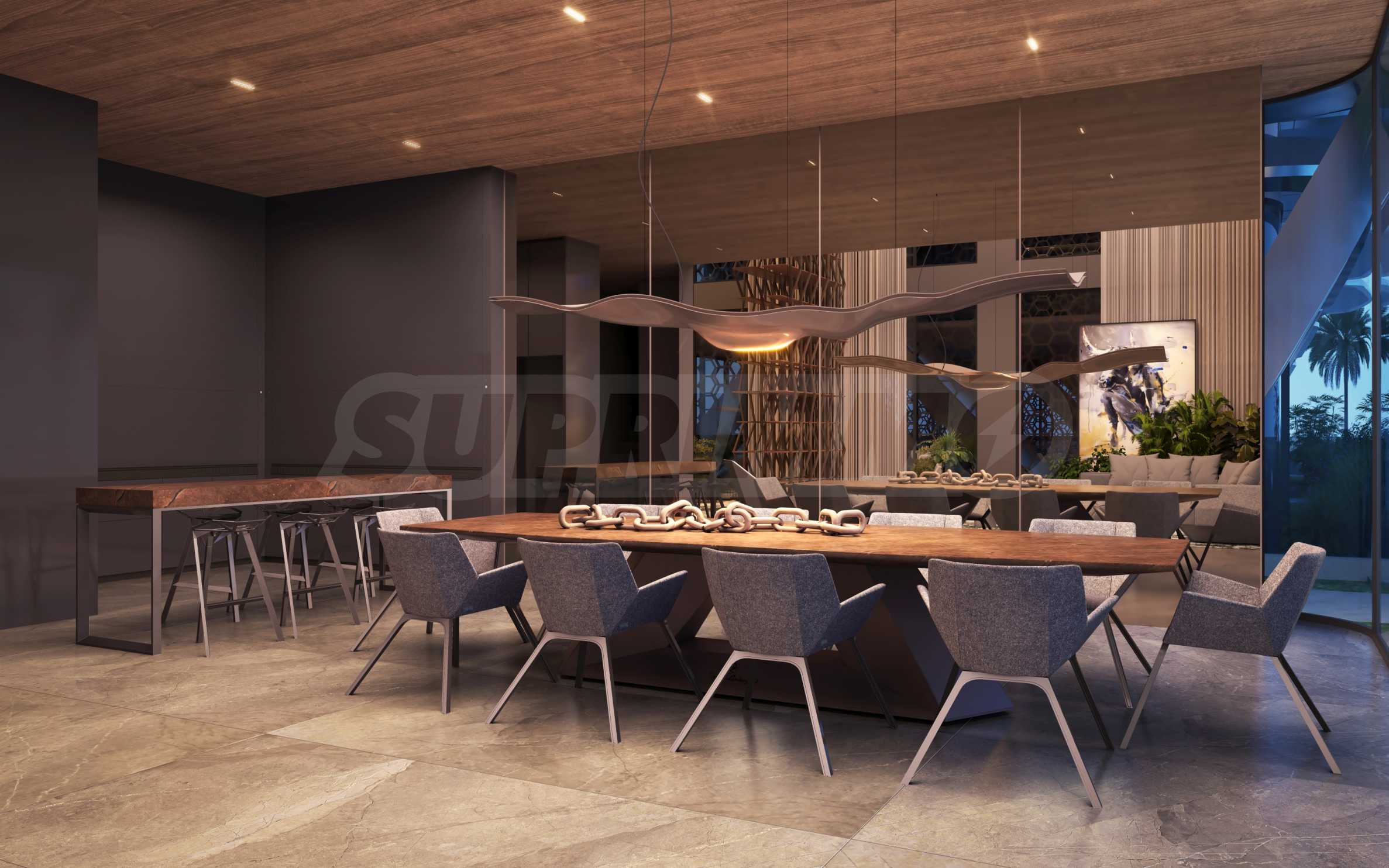 Für alle, die einen aktiven Lebensstil pflegen, bietet der Komplex ein geräumiges, modern ausgestattetes Fitnessstudio sowie ein Yogastudio. Eine Sauna und ein Wellnessbereich zur Erholung, für innere Balance und Harmonie sind ebenfalls geplant. Die Freizeit lässt sich im Grillbereich mit Essplatz oder im Open-Air-Kino verbringen – ideal für gesellige Abende unter dem Sternenhimmel. Für die jüngsten Bewohner gibt es ein spezielles Kinderspielzimmer, das eine sichere und anregende Umgebung zum Spielen und Toben bietet.