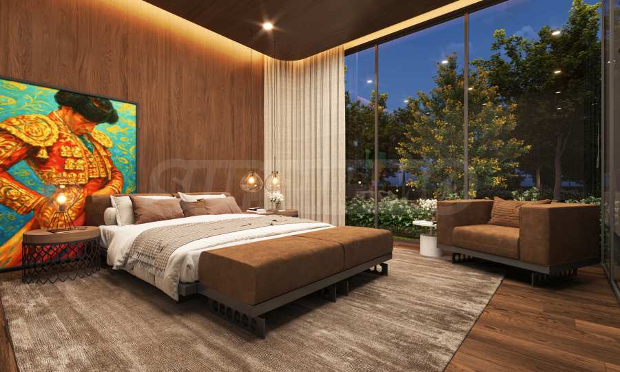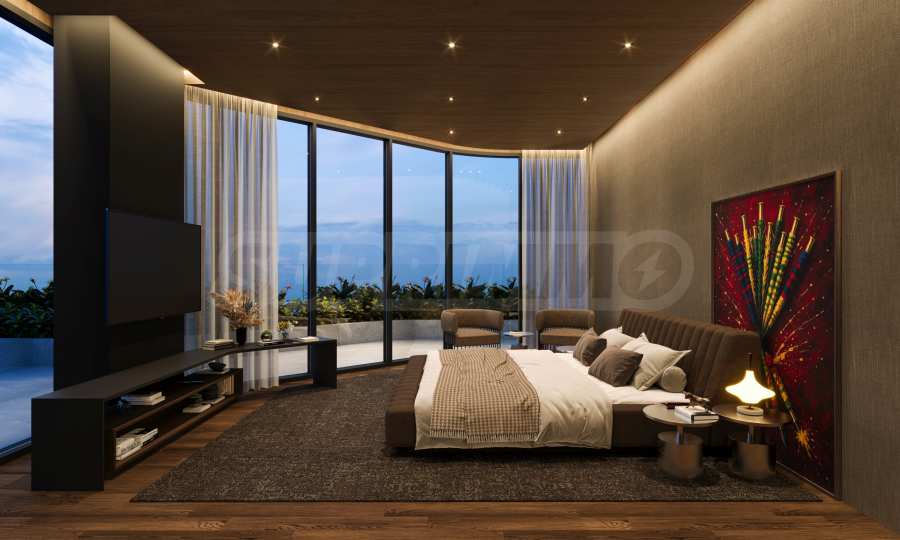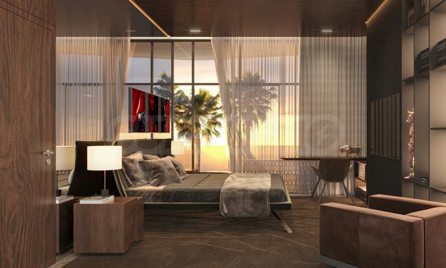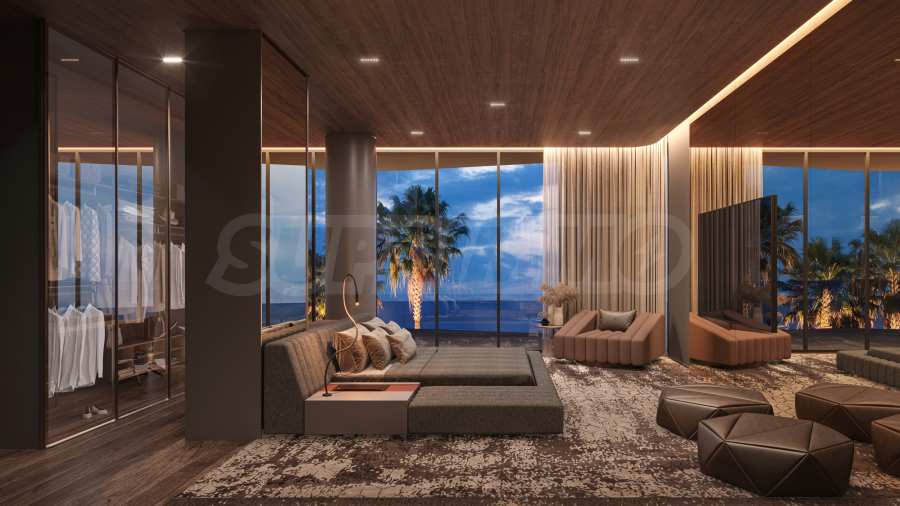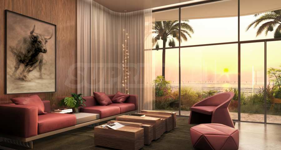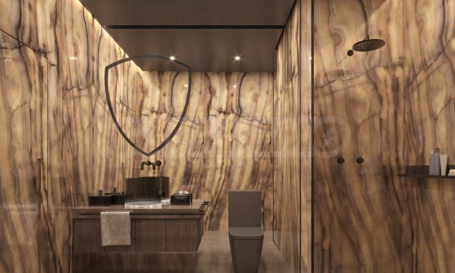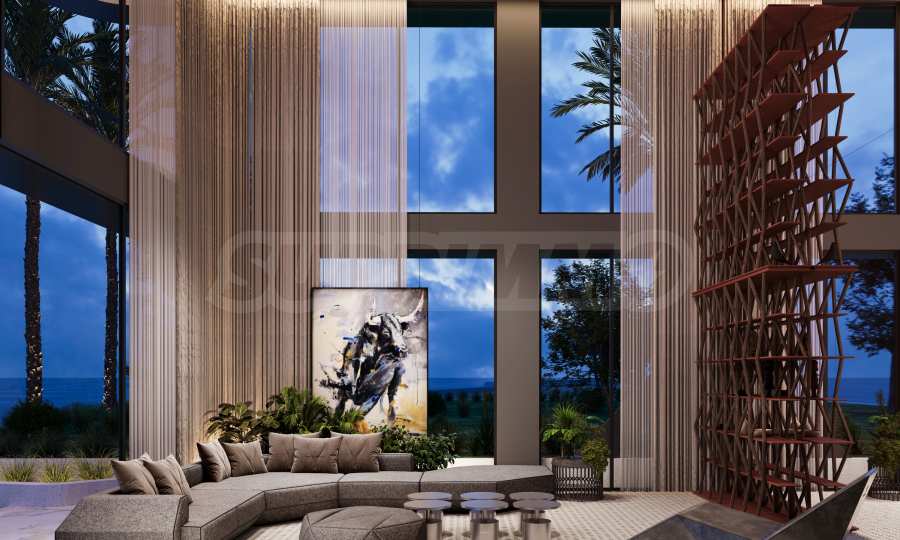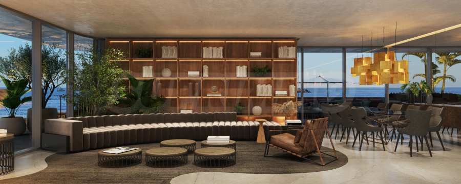 Akustischer Komfort, sanftes Licht und harmonische Materialübergänge schaffen eine Atmosphäre konzentrierter Ruhe. Die Innenräume sind als natürliche Erweiterung der Designsprache von Tonino Lamborghini konzipiert – kühn, raffiniert und von dezenter Eleganz. Klare architektonische Linien formen großzügige Räume, in denen das Licht frei auf geprägten Oberflächen und präzise ausgewählten Materialien fließen kann. Eine zurückhaltende Farbpalette warmer, neutraler Töne, ergänzt durch subtile metallische Akzente, harmoniert mit der Küstenumgebung und bewahrt gleichzeitig einen unverwechselbaren Stil.