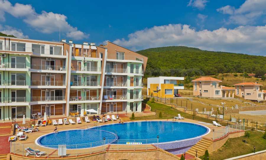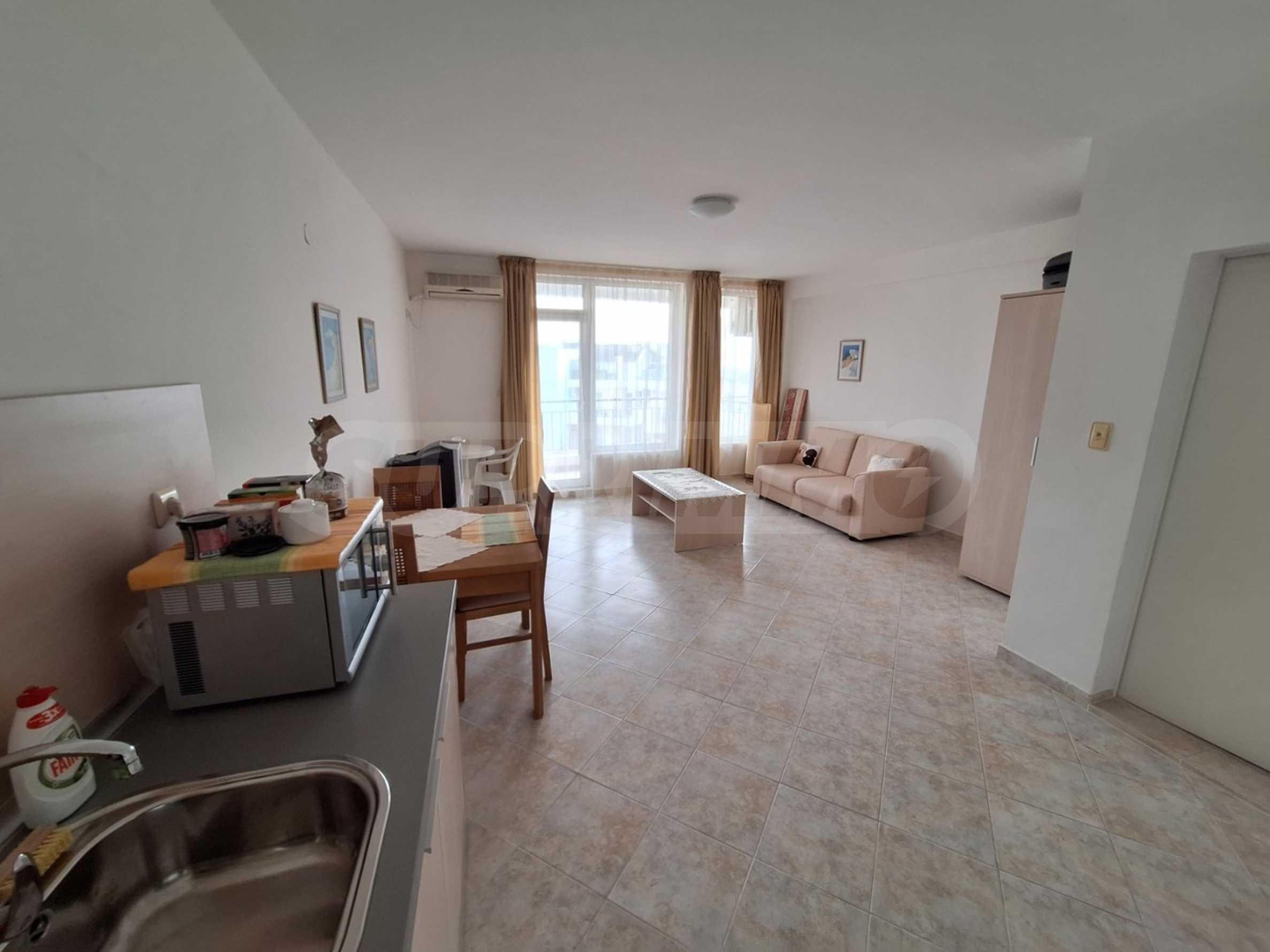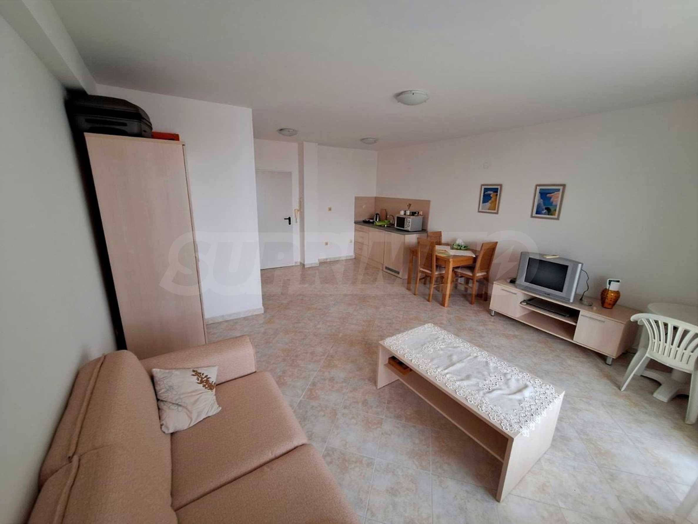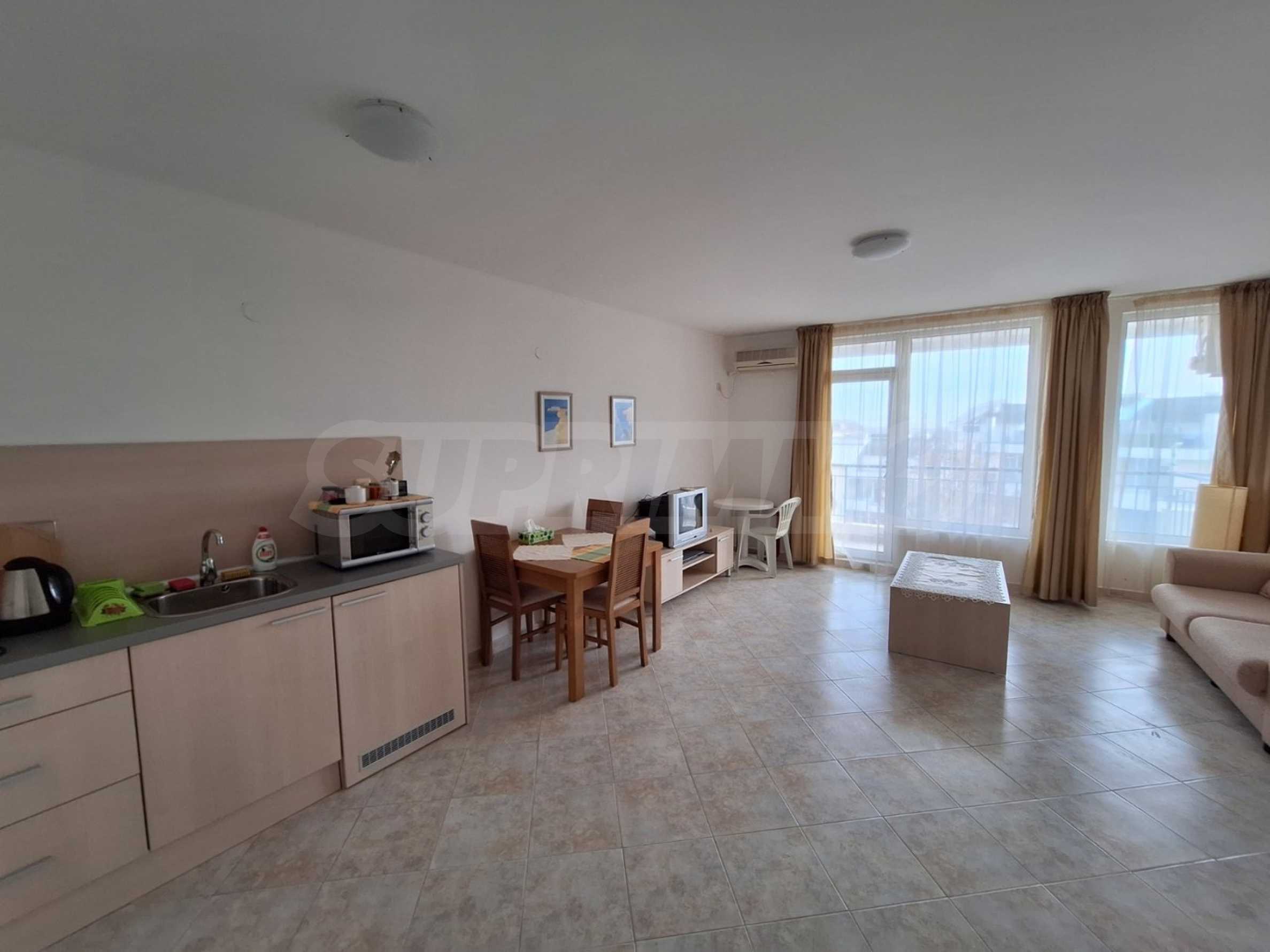 Wir bieten ein möbliertes, geräumiges und helles Studio zum Verkauf an, das Teil einer beliebten Mini-Ferienanlage mit Pools und weiteren Annehmlichkeiten ist. Die Anlage liegt inmitten der Natur in einer ökologisch sauberen Gegend am Fuße des Balkangebirges, nahe Sonnenstrand, im Dorf Kosharitsa.