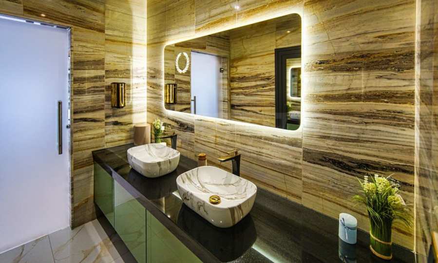 Es besteht aus einem Hauptspeisesaal mit Bar und Designermöbeln, einer Küche mit professioneller Ausstattung und einer Toilette.