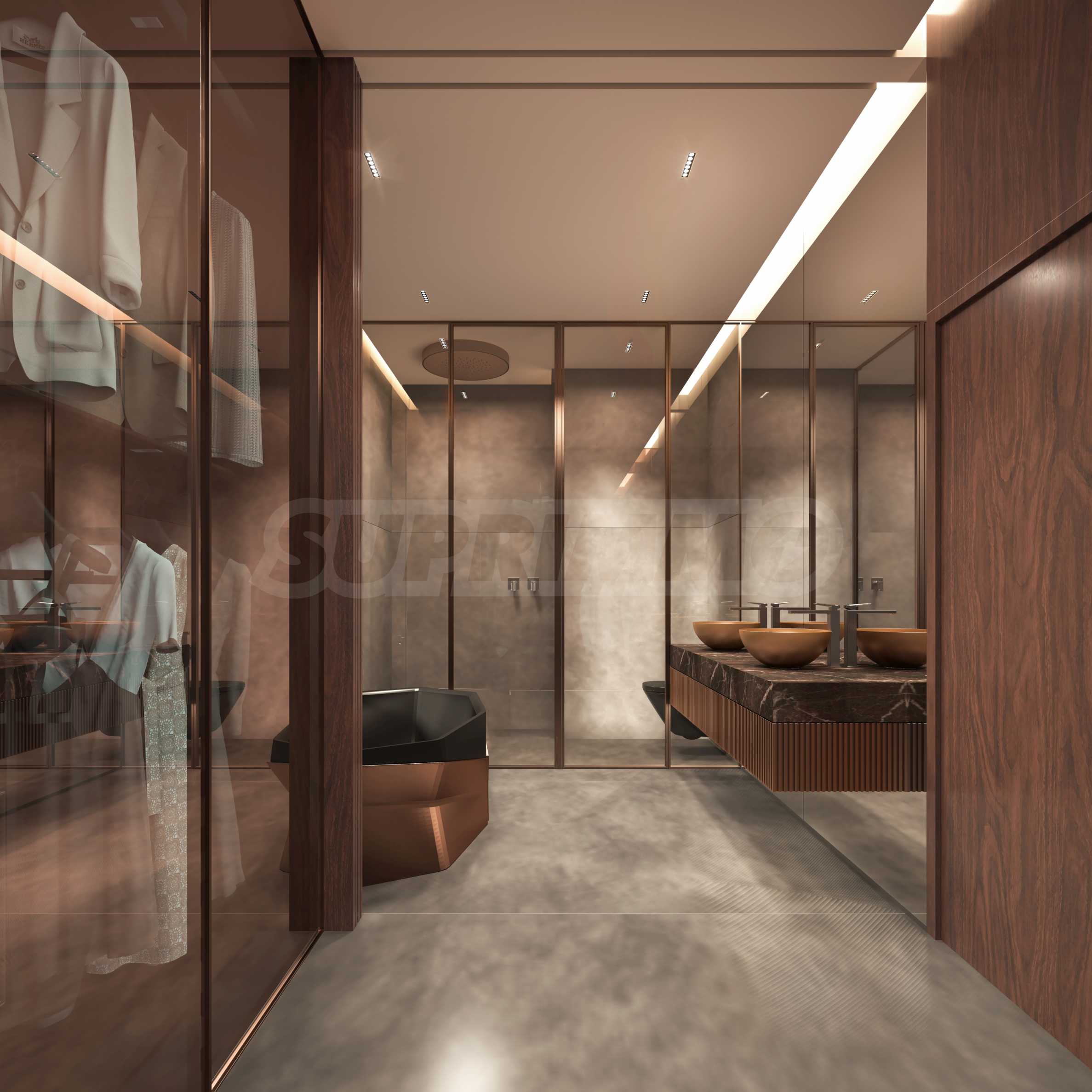 Die Innenräume wurden mit Fokus auf akustischen Komfort, sanfte Beleuchtung und fließende Materialübergänge gestaltet. Das Design folgt dem charakteristischen Tonino-Lamborghini-Stil – markant, präzise und elegant, ohne unnötige Prahlerei. Klare Linien formen großzügige Räume, in denen das Licht frei auf geprägten Oberflächen und sorgfältig ausgewählten Materialien tanzt. Die warme, neutrale Farbpalette, ergänzt durch dezente Metallic-Akzente, harmoniert mit der Küstenumgebung und unterstreicht den unverwechselbaren Charakter des Projekts.