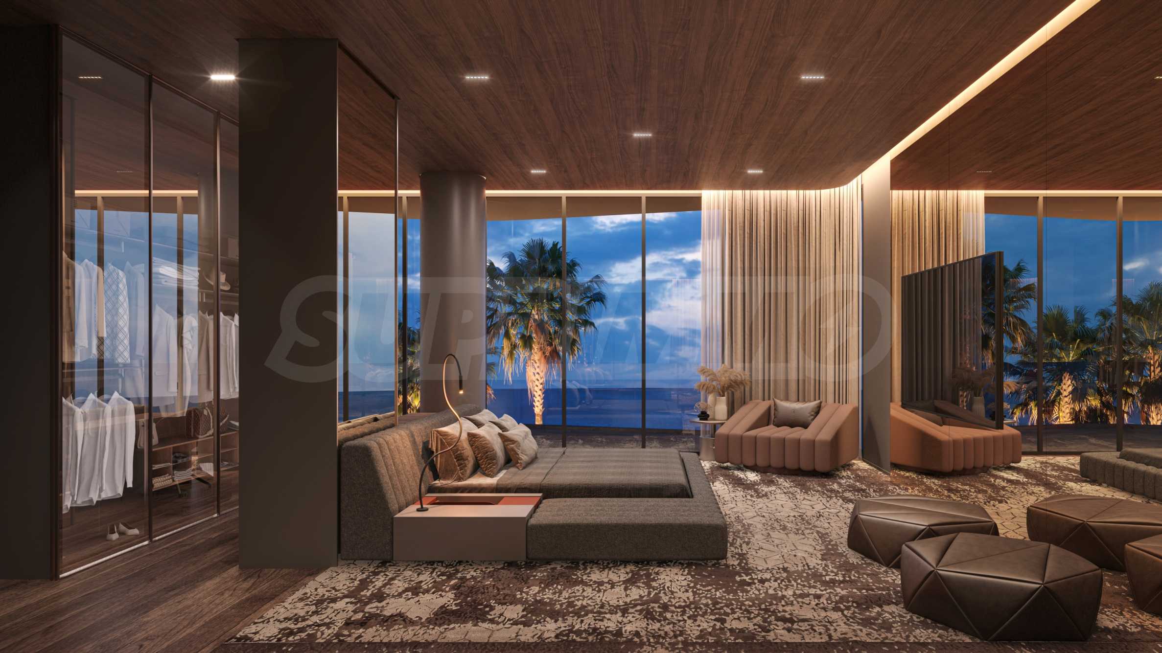 Die Innenräume wurden mit Fokus auf akustischen Komfort, sanfte Beleuchtung und fließende Materialübergänge gestaltet. Das Design folgt dem charakteristischen Tonino-Lamborghini-Stil – markant, präzise und elegant, ohne unnötige Prahlerei. Klare Linien formen großzügige Räume, in denen das Licht frei auf geprägten Oberflächen und sorgfältig ausgewählten Materialien tanzt. Die warme, neutrale Farbpalette, ergänzt durch dezente Metallic-Akzente, harmoniert mit der Küstenumgebung und unterstreicht den unverwechselbaren Charakter des Projekts.