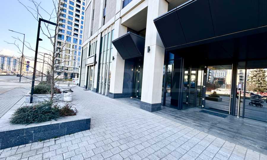 Wir präsentieren Ihnen ein hervorragendes, schlüsselfertiges Büro im Erdgeschoss eines modernen Gebäudes der Klasse A in außergewöhnlicher Lage – nur 2 Gehminuten vom Einkaufszentrum Mall Paradise und der U-Bahn-Station Vitosha entfernt.