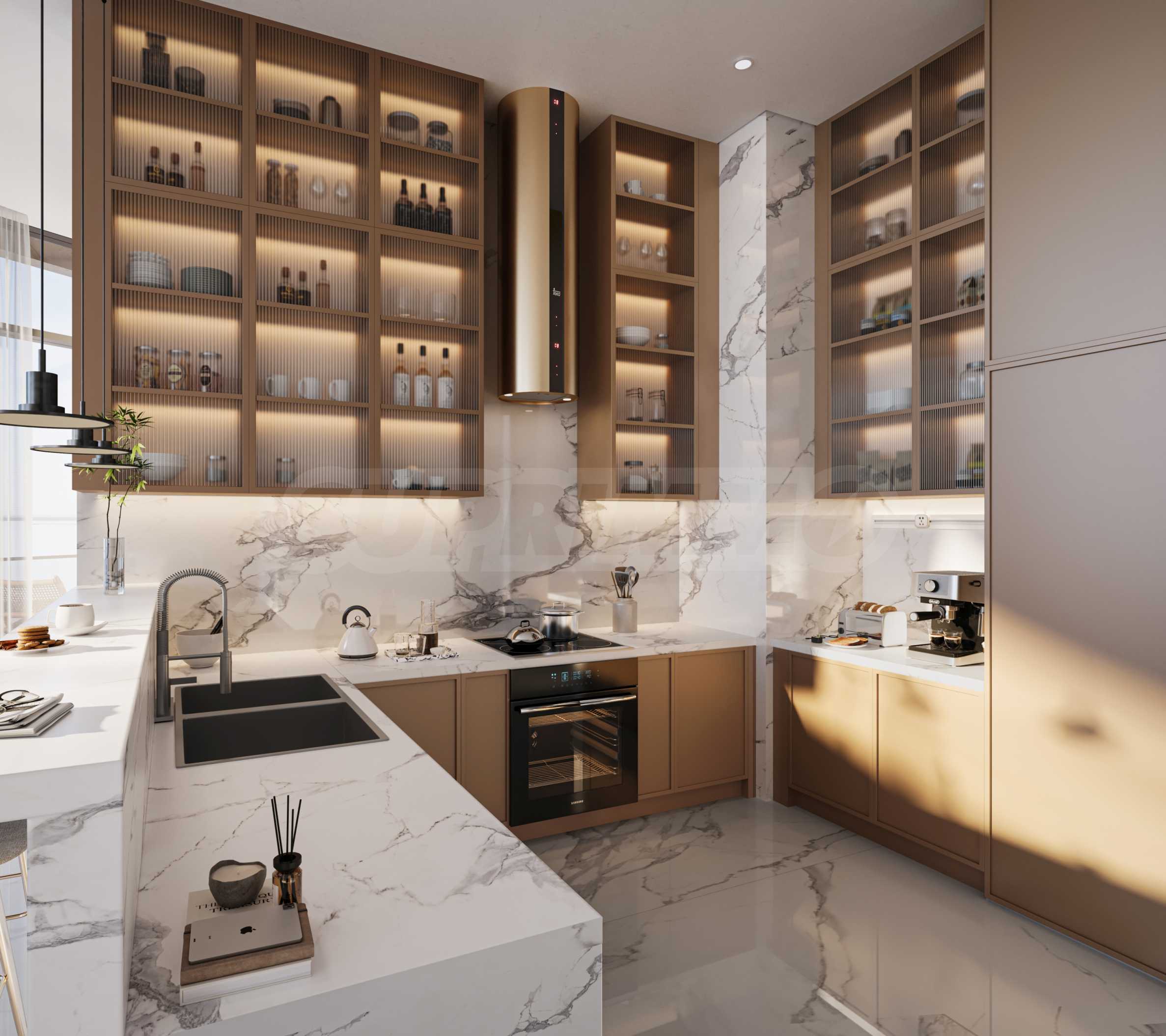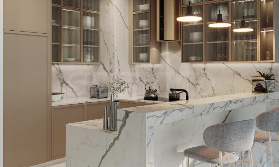 Das Gebäude bietet Studios sowie Ein-, Zwei- und Drei-Zimmer-Wohnungen, die mit viel Liebe zum Detail gestaltet wurden, um ein sicheres, komfortables und harmonisches Wohnumfeld zu schaffen. Die Grundrisse sind um großzügige, offene Wohnbereiche angeordnet, die Küche und Essbereich harmonisch verbinden und einen modernen Raum für Kommunikation und gemeinsame Momente bilden.