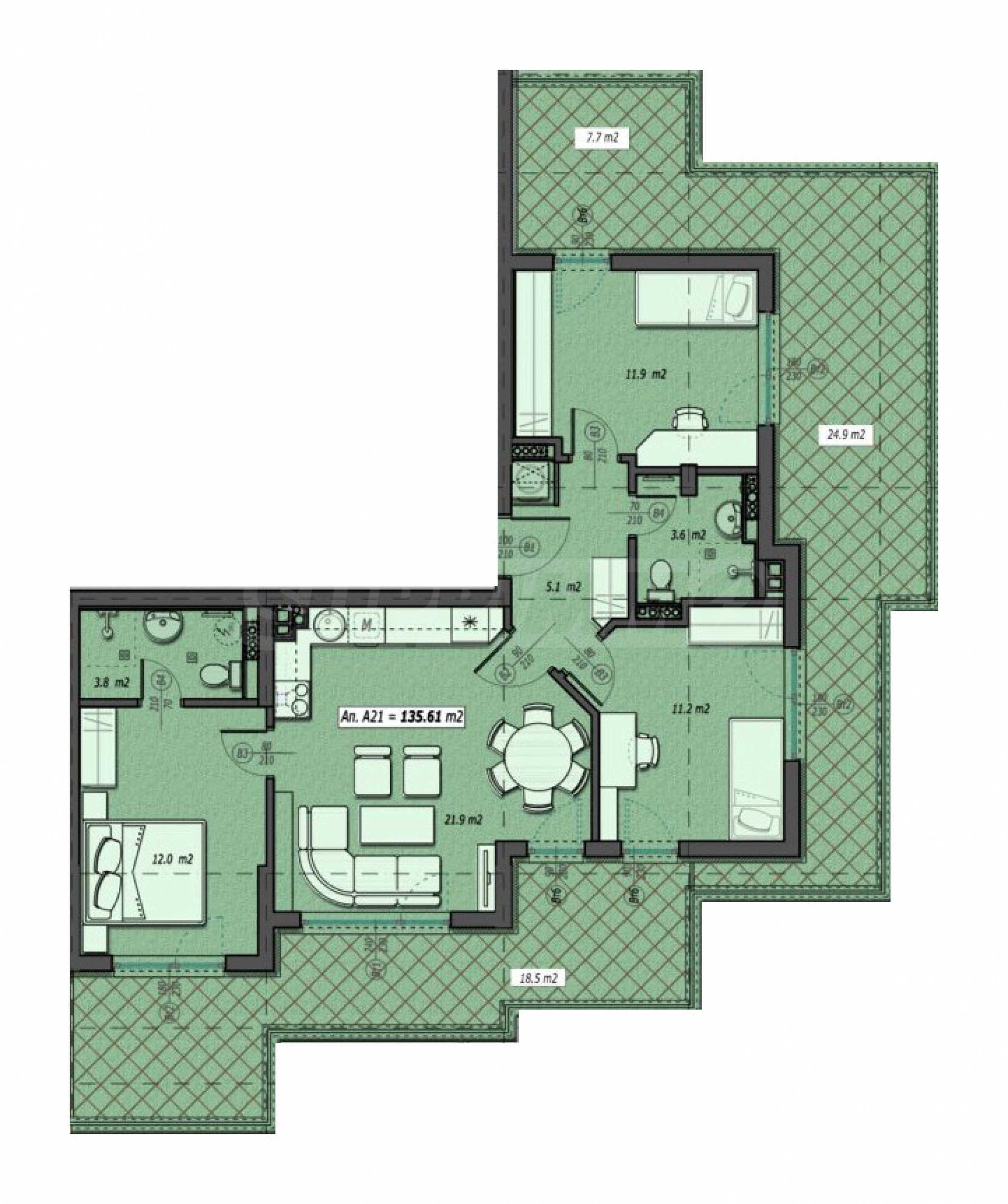 Wir bieten eine Vier-Zimmer-Wohnung in einem neuen Luxusgebäude gegenüber von Act 16, am Fuße des Vitosha-Gebirges gelegen.
