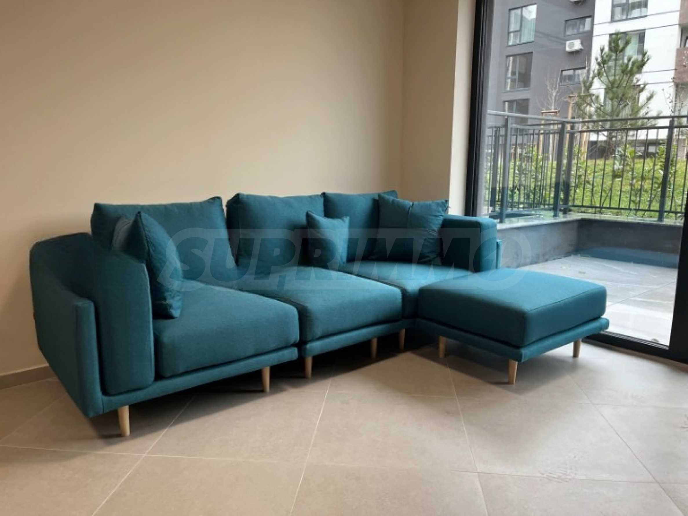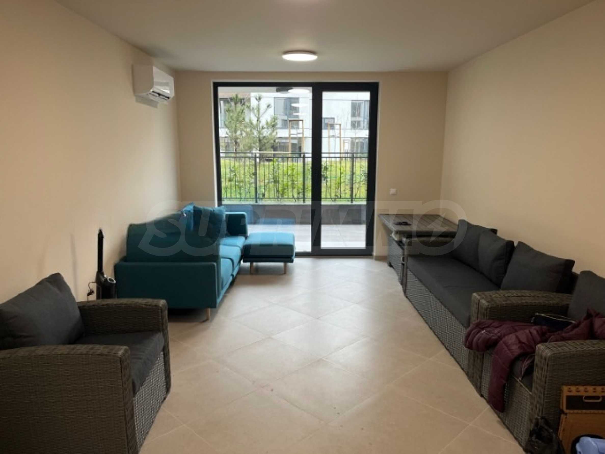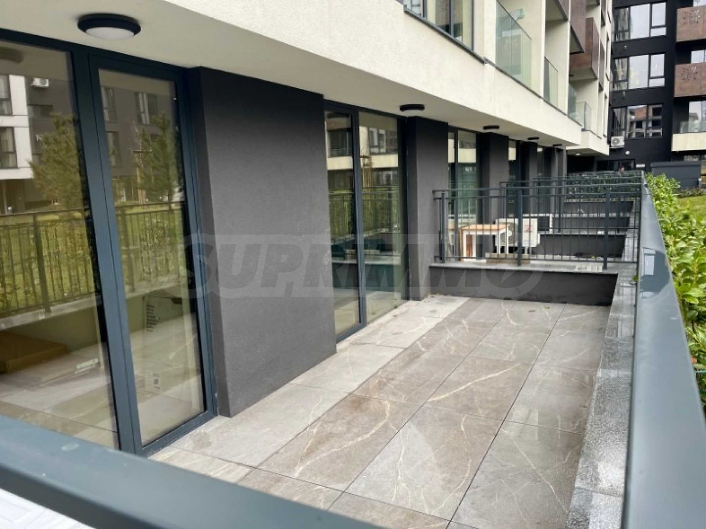 Die Immobilie hat eine Gesamtfläche von 75 m² und befindet sich im Erdgeschoss. Das Apartment ist vollständig nach Süden ausgerichtet und verfügt über eine geräumige Terrasse mit Blick auf einen Innenhof. Es liegt abseits vom Straßenlärm und bietet einen direkten Blick auf das Witoscha-Gebirge.