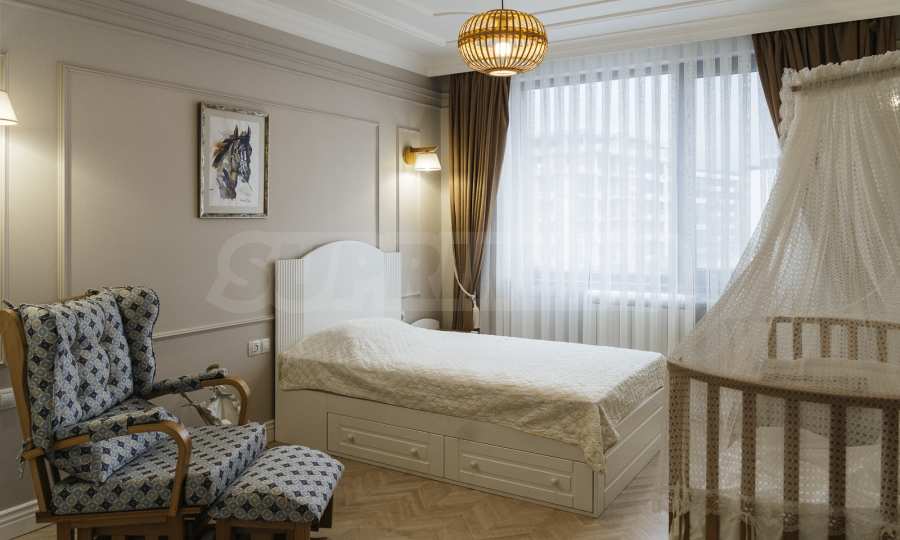 Wir präsentieren Ihnen eine wunderschöne Dreizimmerwohnung mit neuen Möbeln, einer Garage und zwei Außenstellplätzen im Viertel "Malinova Dolina", in einem hervorragend gepflegten Gebäude neben dem Winterpalast und nur wenige Meter von der Nationalen Akademie der Wissenschaften entfernt, neben einer Haltestelle des öffentlichen Nahverkehrs, zahlreichen Restaurants und Lebensmittelgeschäften.