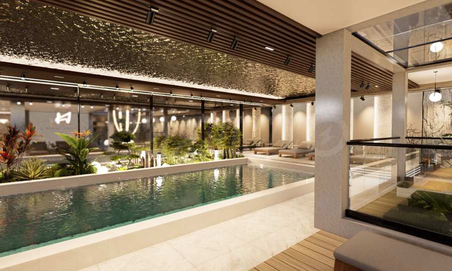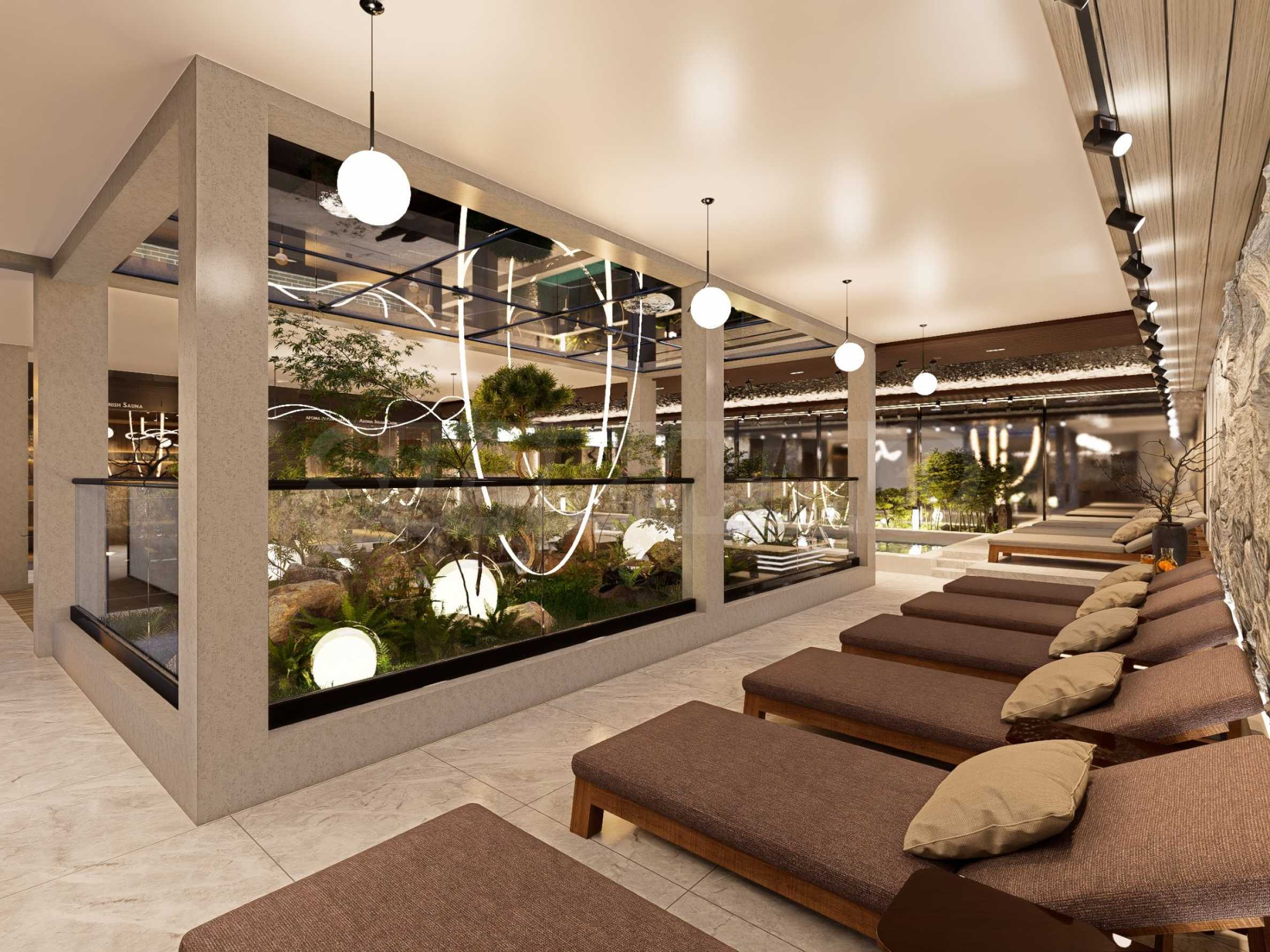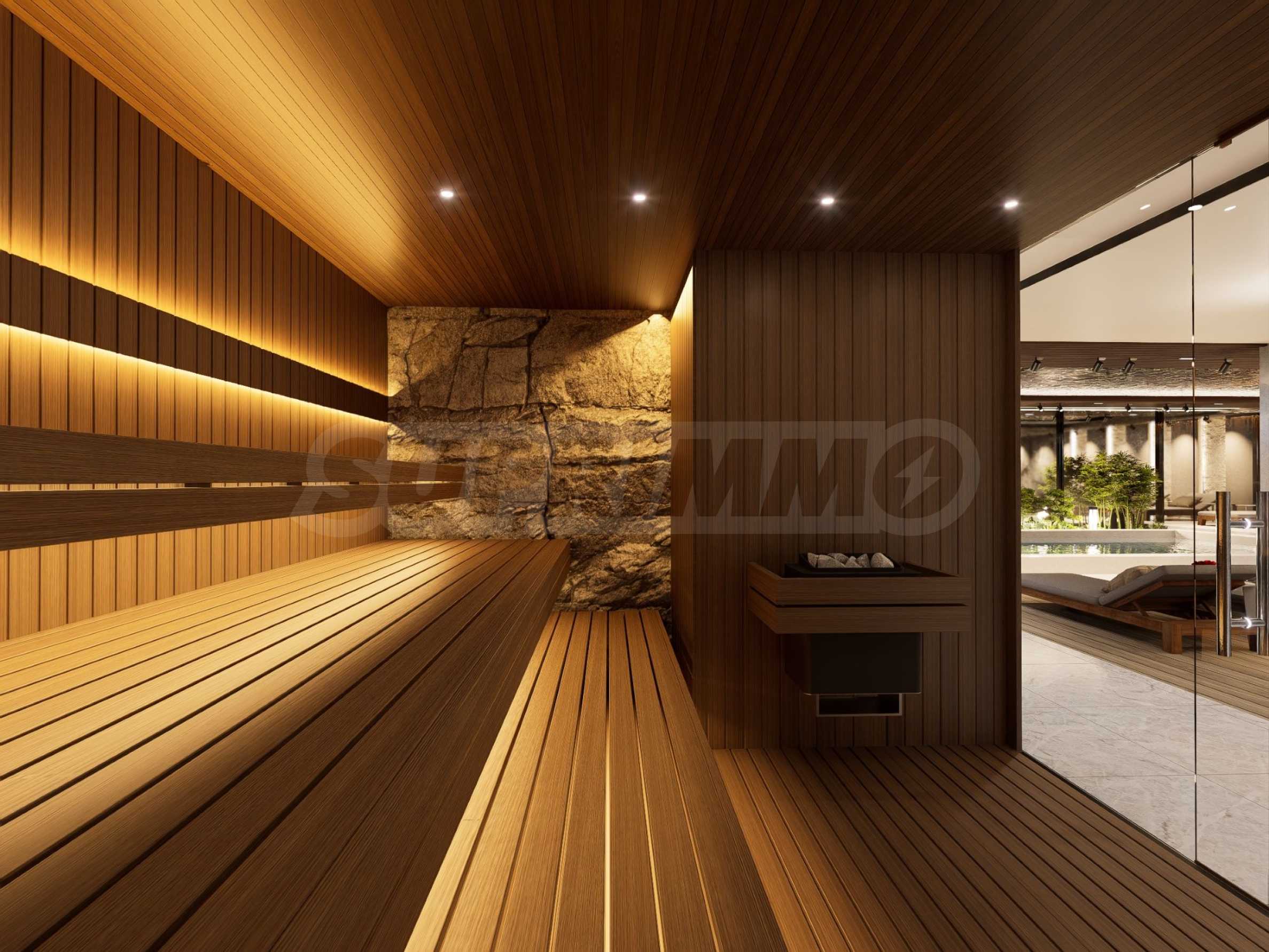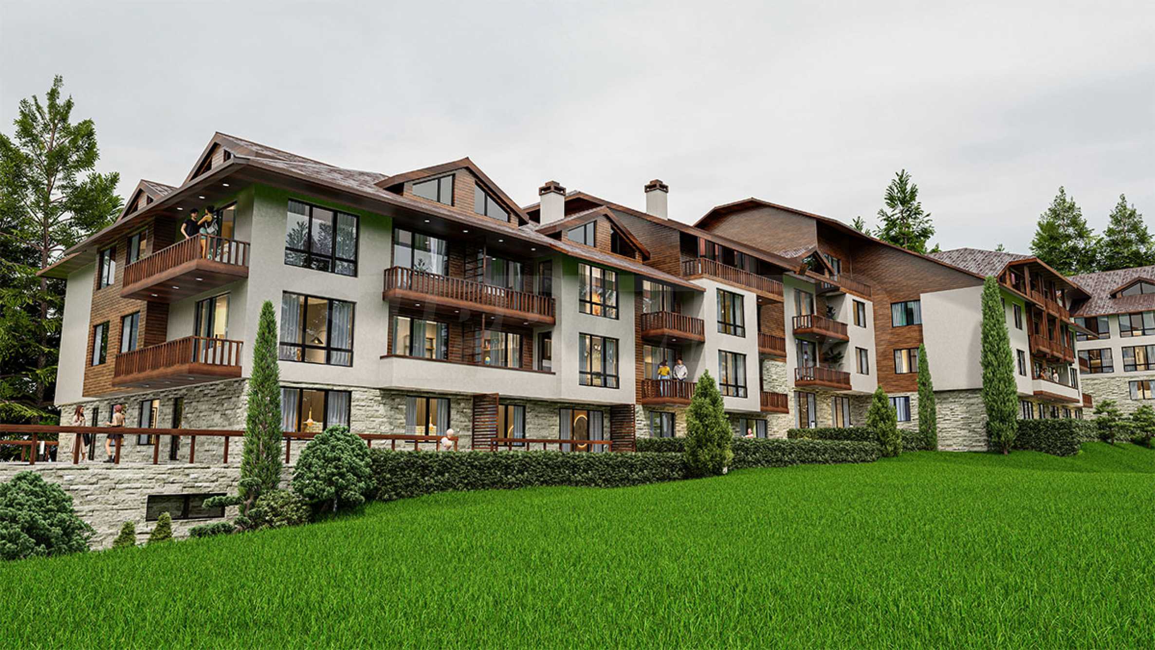 Das Projekt wurde mit zeitgenössischer alpiner Architektur und einem Konzept für ein sicheres Familienumfeld mit Zugangskontrolle, mit Innenhöfen und Grünflächen zur Erholung realisiert. Der größte Vorteil des Projekts ist ein modernes SPA-Zentrum mit einem wunderschönen japanischen Garten.