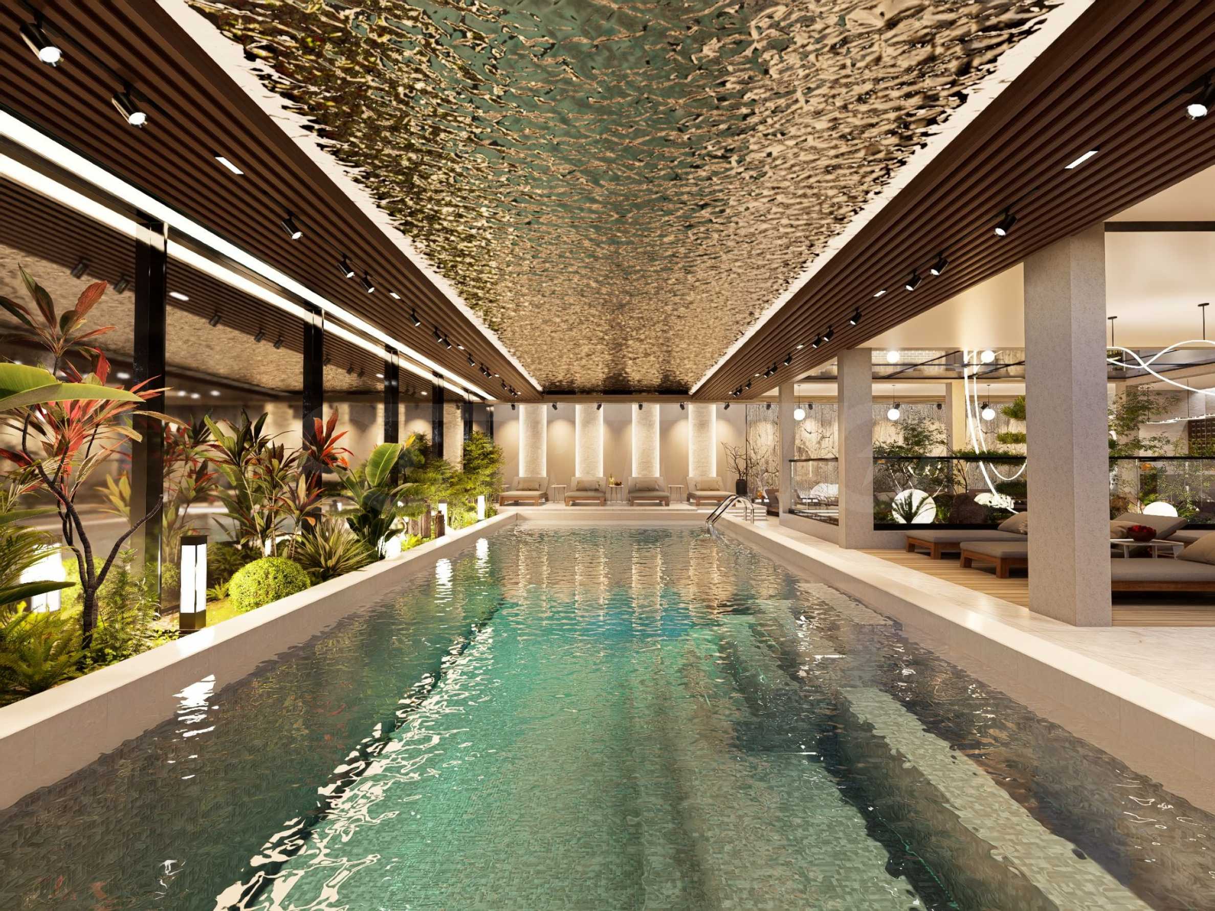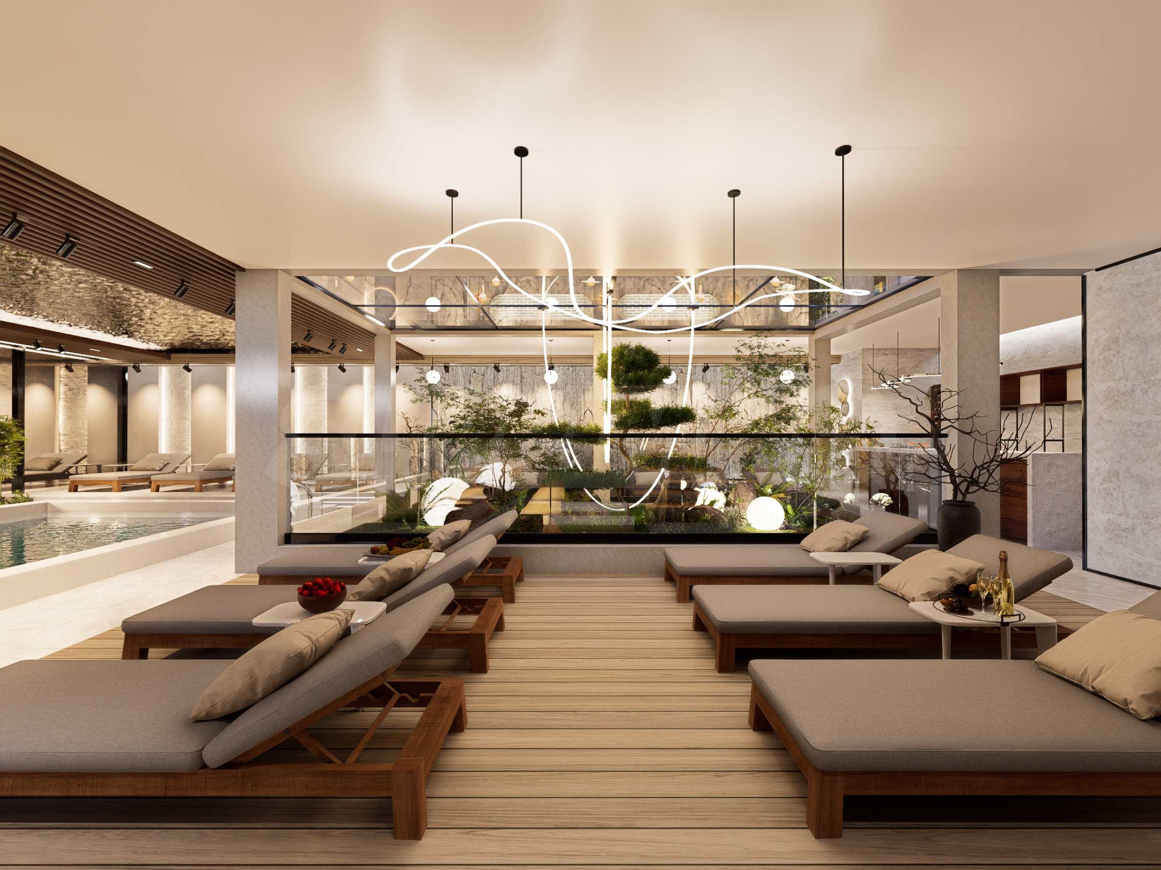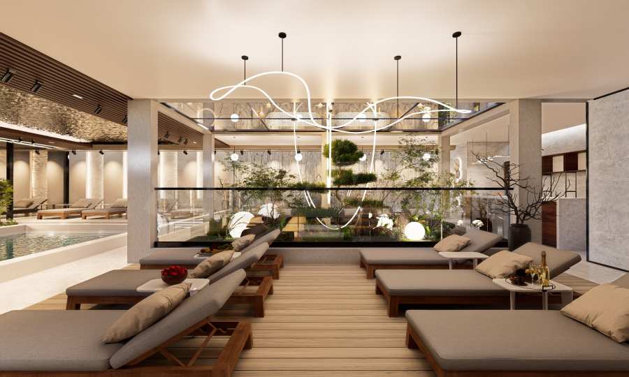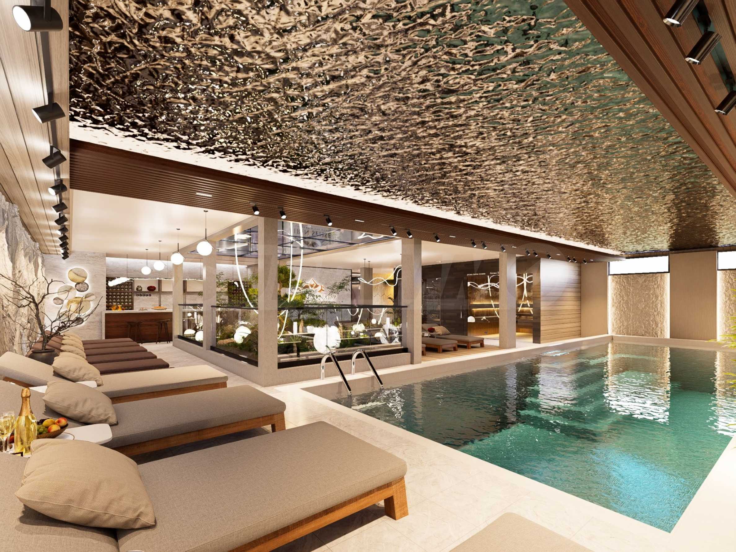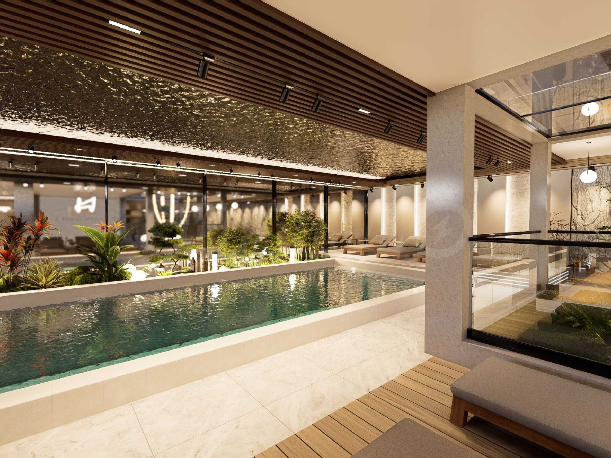 Das Projekt wurde mit zeitgenössischer alpiner Architektur und einem Konzept für ein sicheres Familienumfeld mit Zugangskontrolle, mit Innenhöfen und Grünflächen zur Erholung realisiert. Der größte Vorteil des Projekts ist ein modernes SPA-Zentrum mit einem wunderschönen japanischen Garten.