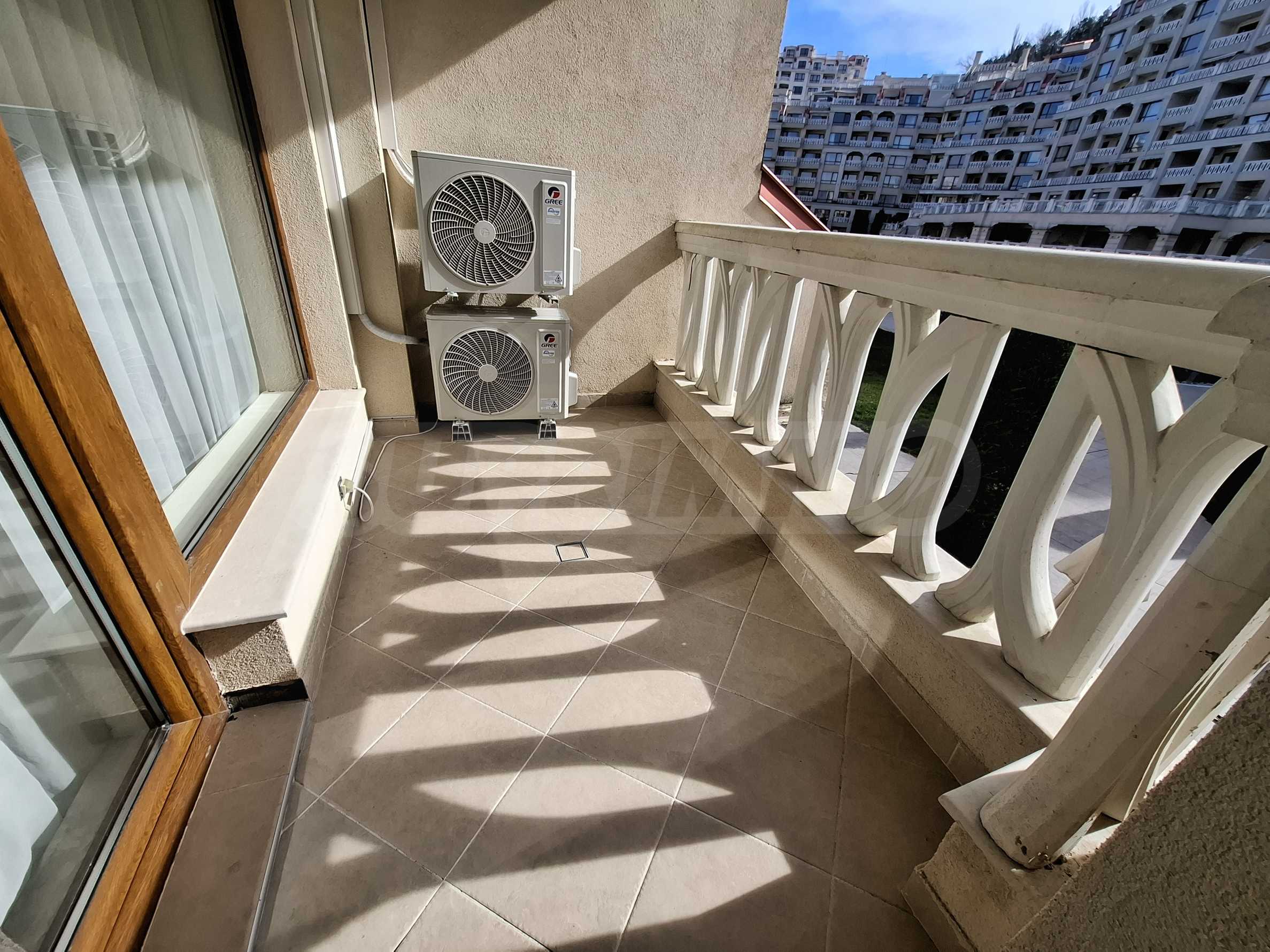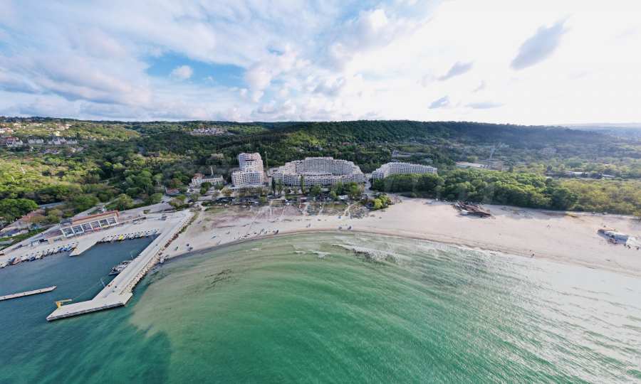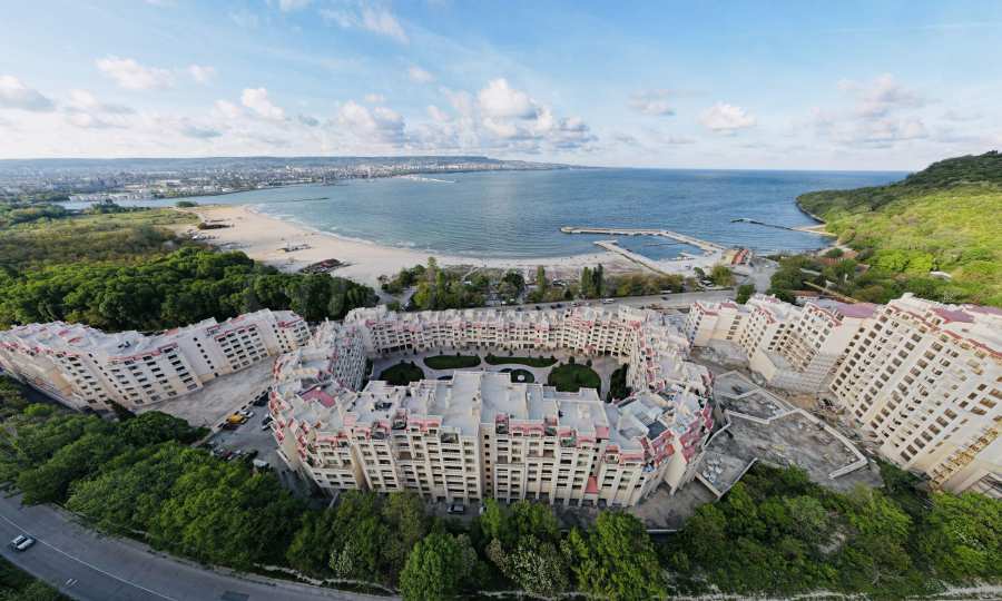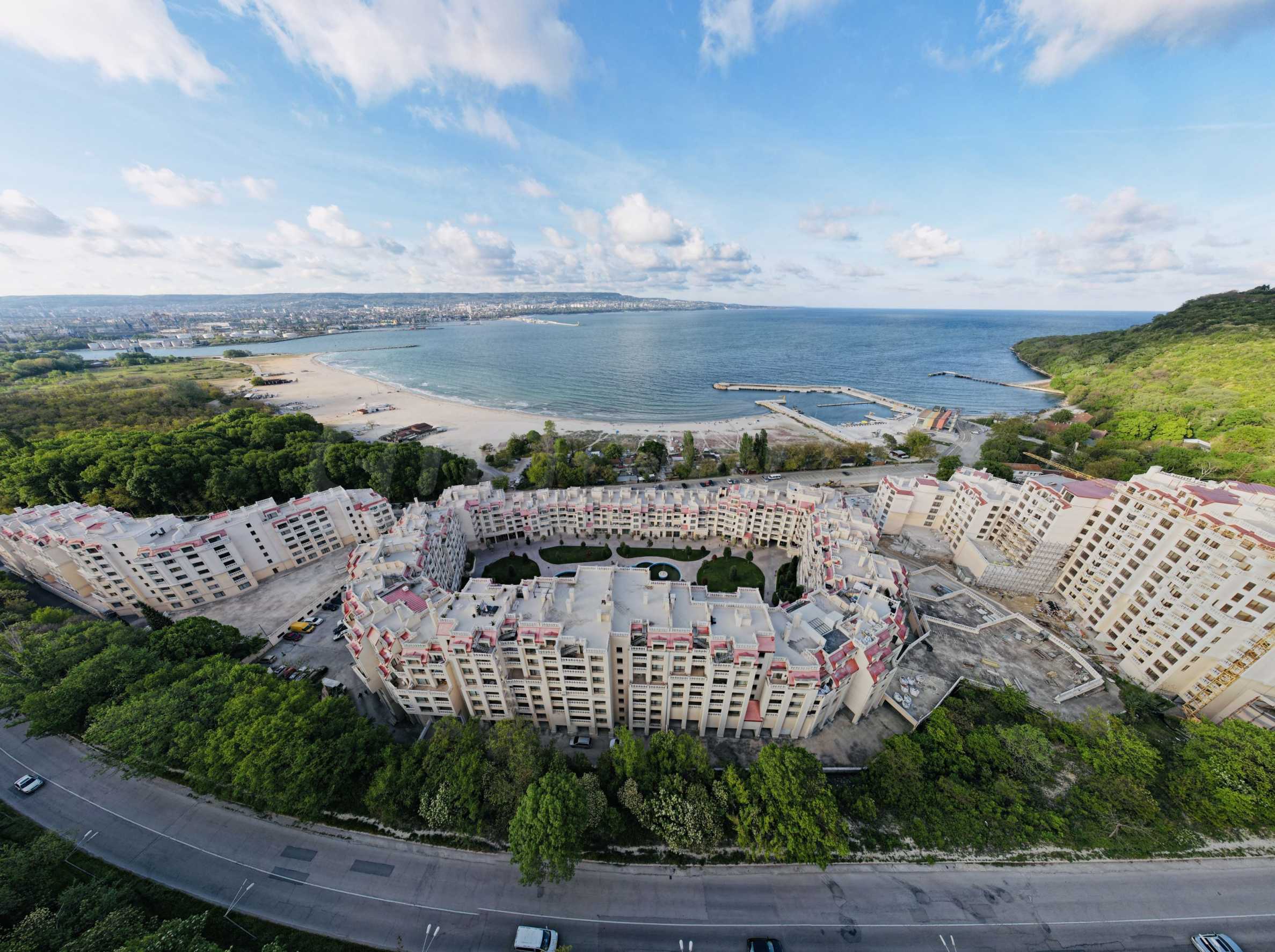 Die Anlage liegt direkt am Meer auf einem Hügel mit beeindruckendem Blick auf die Bucht von Warna und die Stadt – besonders schön am Abend, wenn die Lichter der Stadt eine einzigartige Atmosphäre schaffen. In unmittelbarer Nähe befindet sich der neue Fischereihafen mit einer modernen Fußgängerpromenade. Der etwa 1 km lange Strand ist nur eine Gehminute entfernt, und der grüne Park „Asparuhovo“ ist in wenigen Sekunden erreichbar.