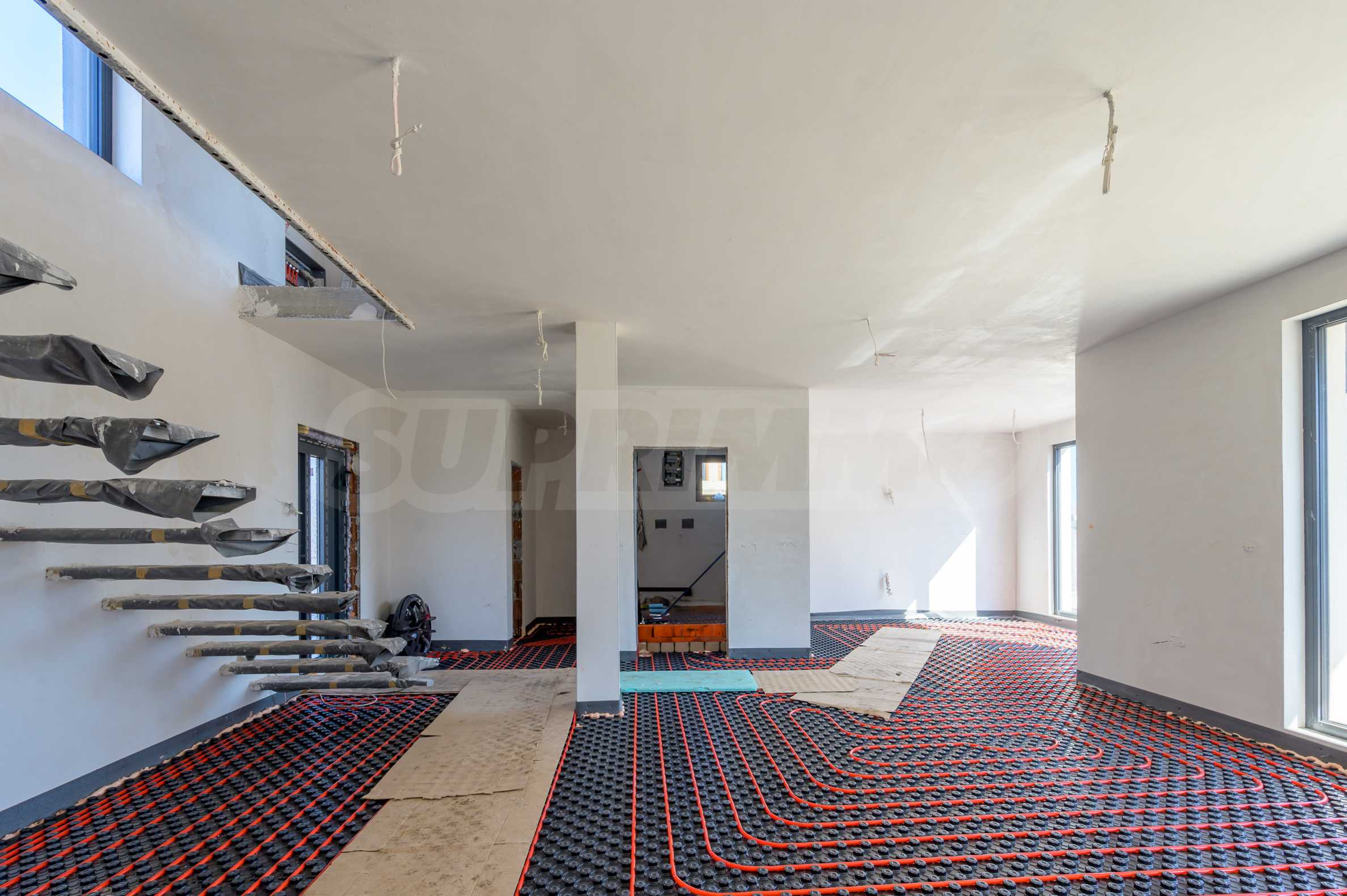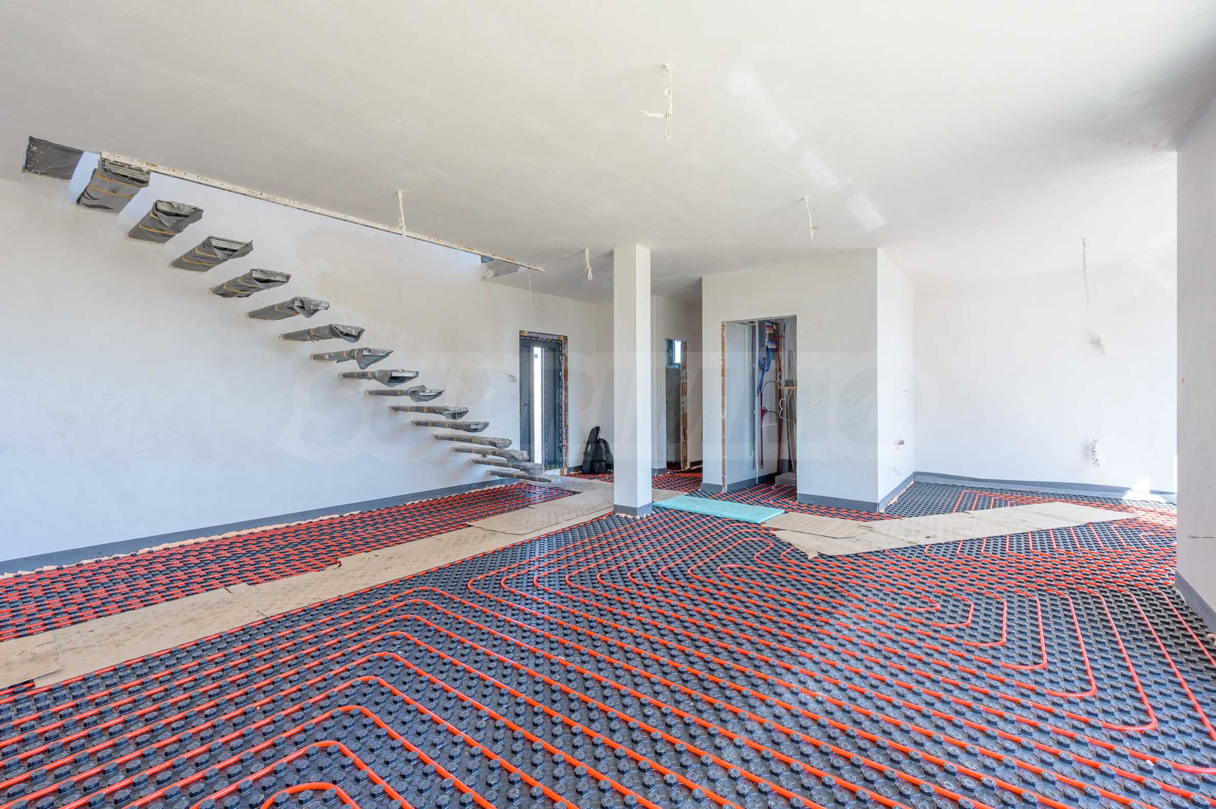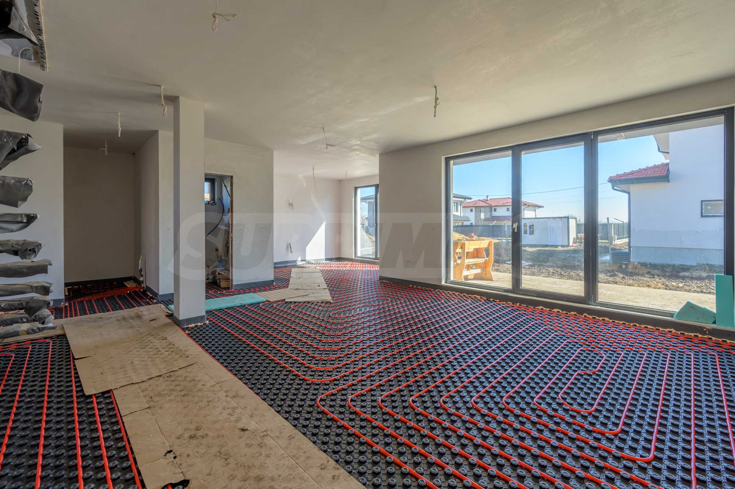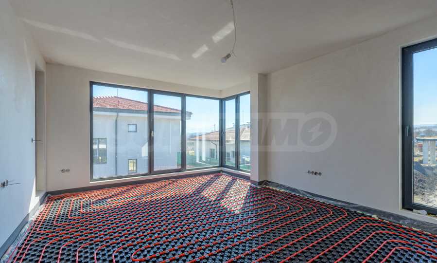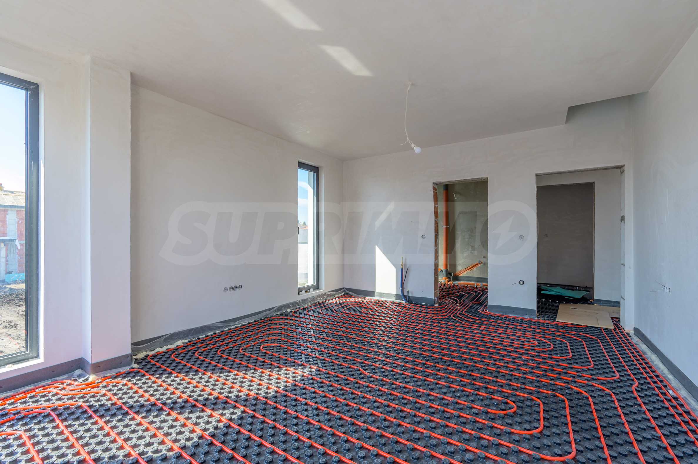 • Fußbodenheizung mit dicker Dämmunterlage.