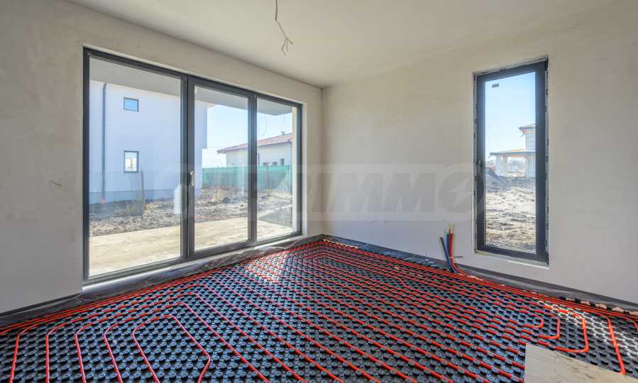 Wir präsentieren Ihnen ein neu erbautes Einfamilienhaus im Dorf Prolesha, nur 15 Minuten von Sofia entfernt. Das Haus ist nach Süden ausgerichtet und befindet sich auf einem separaten Grundstück mit einer Fläche von 599 m². Die Wohnfläche von 240 m² verteilt sich funktional auf zwei Etagen. Das Anwesen liegt direkt an der Straße Nr. 16 und wurde mit hochwertigen Materialien errichtet. Es entspricht modernen Standards in puncto Energieeffizienz, Komfort und Langlebigkeit.