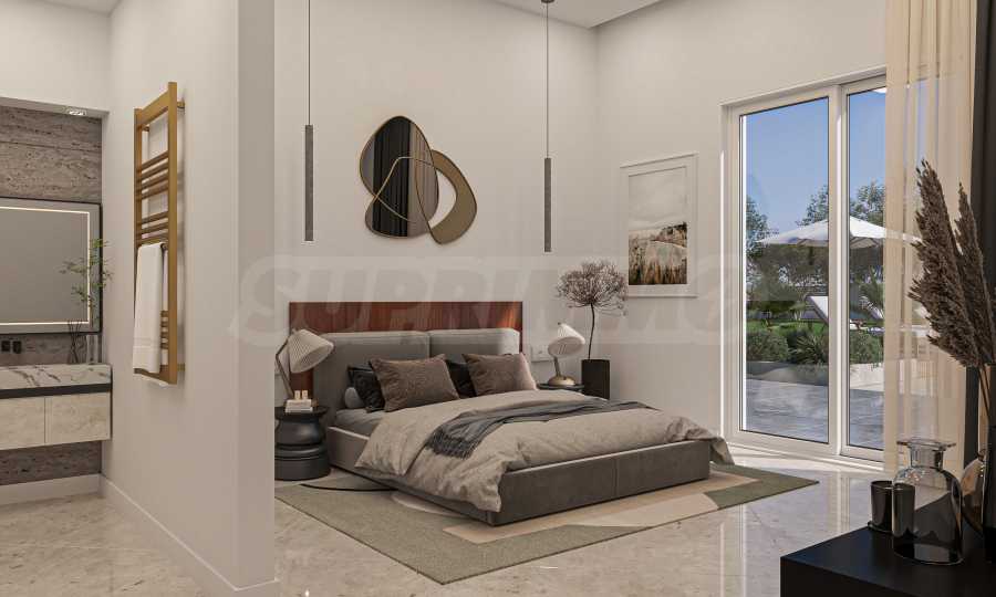 • 1. Obergeschoss: geräumiges Wohnzimmer mit Esszimmer und Küche, drei Schlafzimmer, drei Badezimmer, Terrassen zu allen Zimmern.