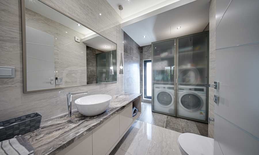Das Haus verfügt über eine Wohnfläche von 528 m², die sich funktional auf mehrere Ebenen verteilt – Keller, Erdgeschoss, Obergeschoss und eine beeindruckende Panoramaterrasse. Das Interieur wird durch eine elegante Natursteintreppe abgerundet, die dem Anwesen ein edles und vollendetes Erscheinungsbild verleiht.