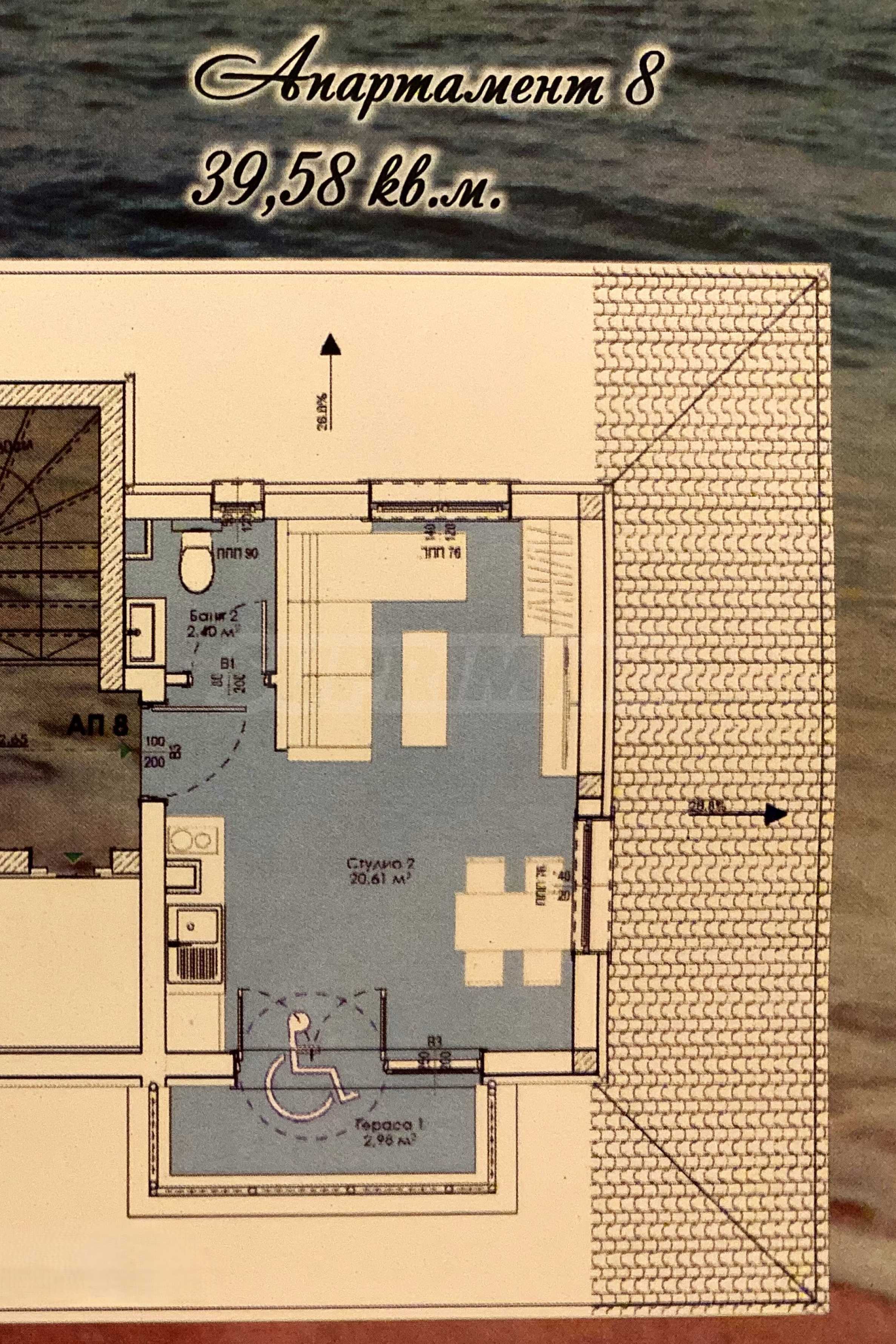 Die Immobilie hat eine Fläche von 39,58 m², befindet sich im 4. Stock und bietet einen Blick auf den Strandzha-Berg.