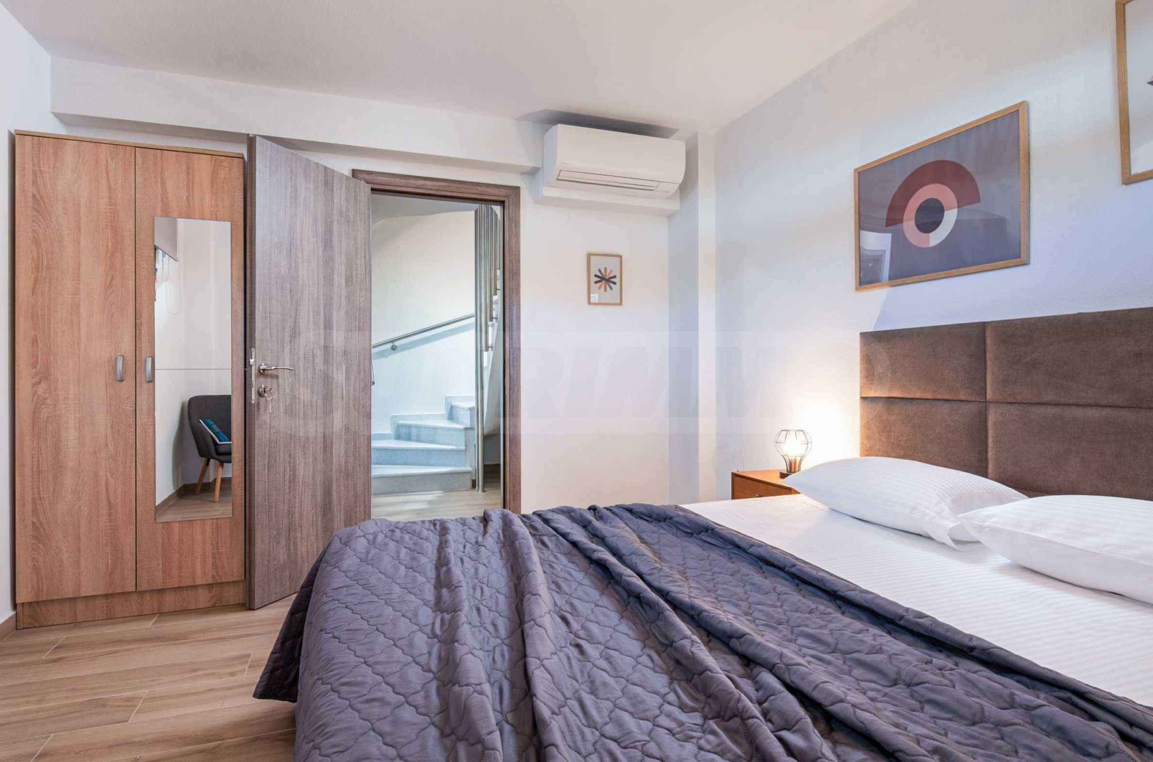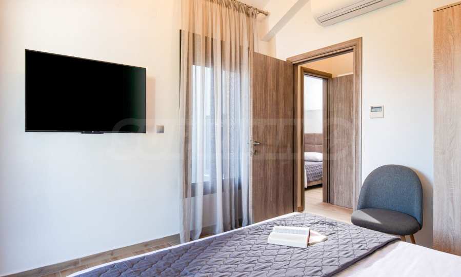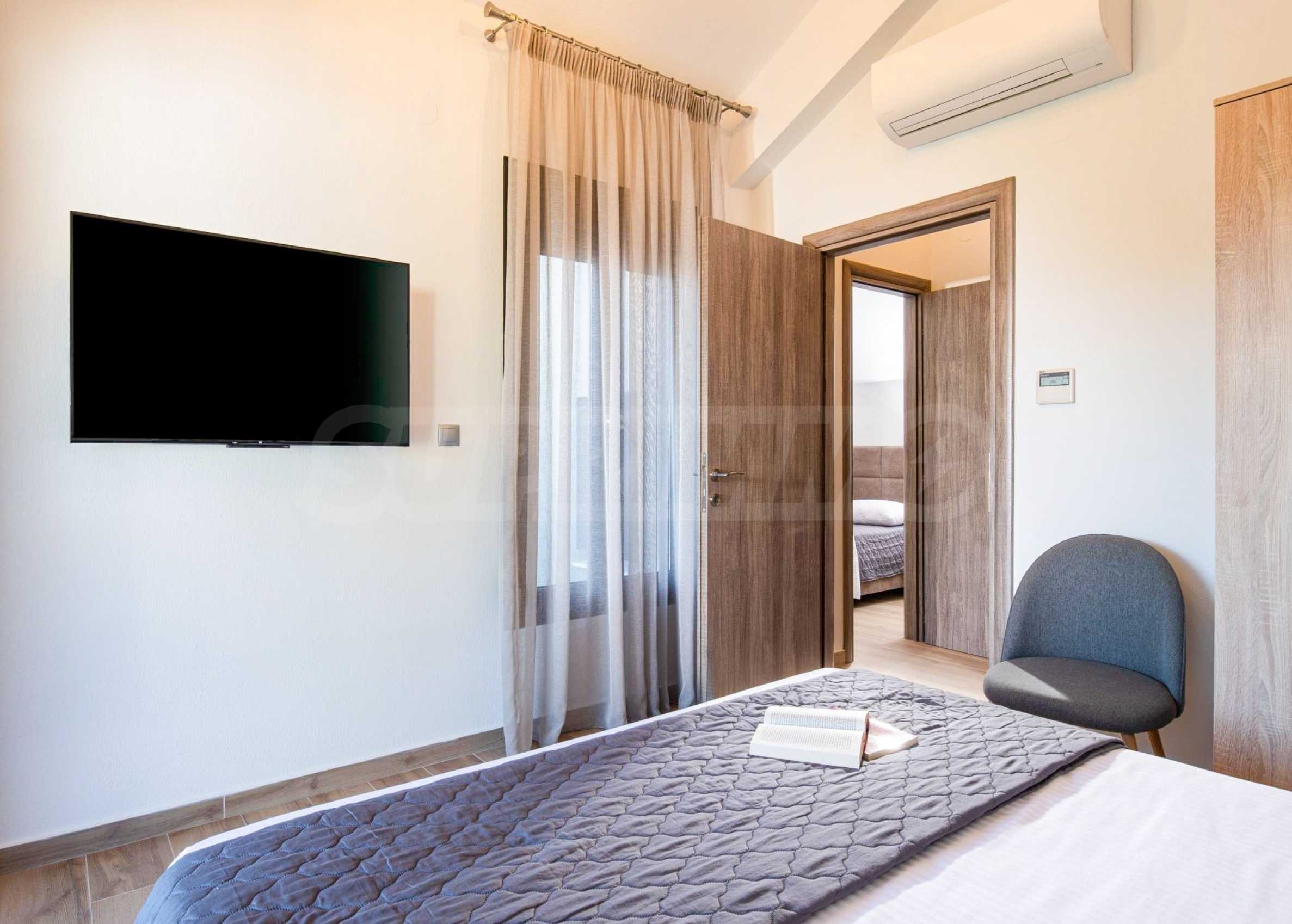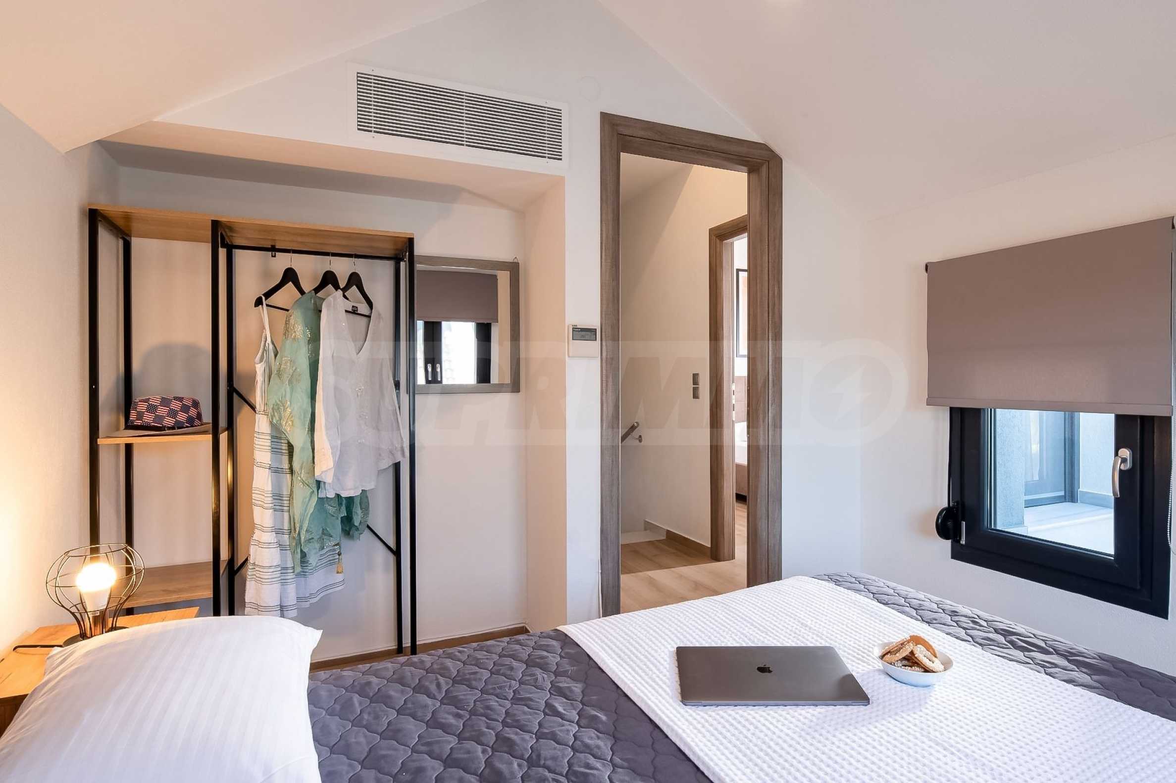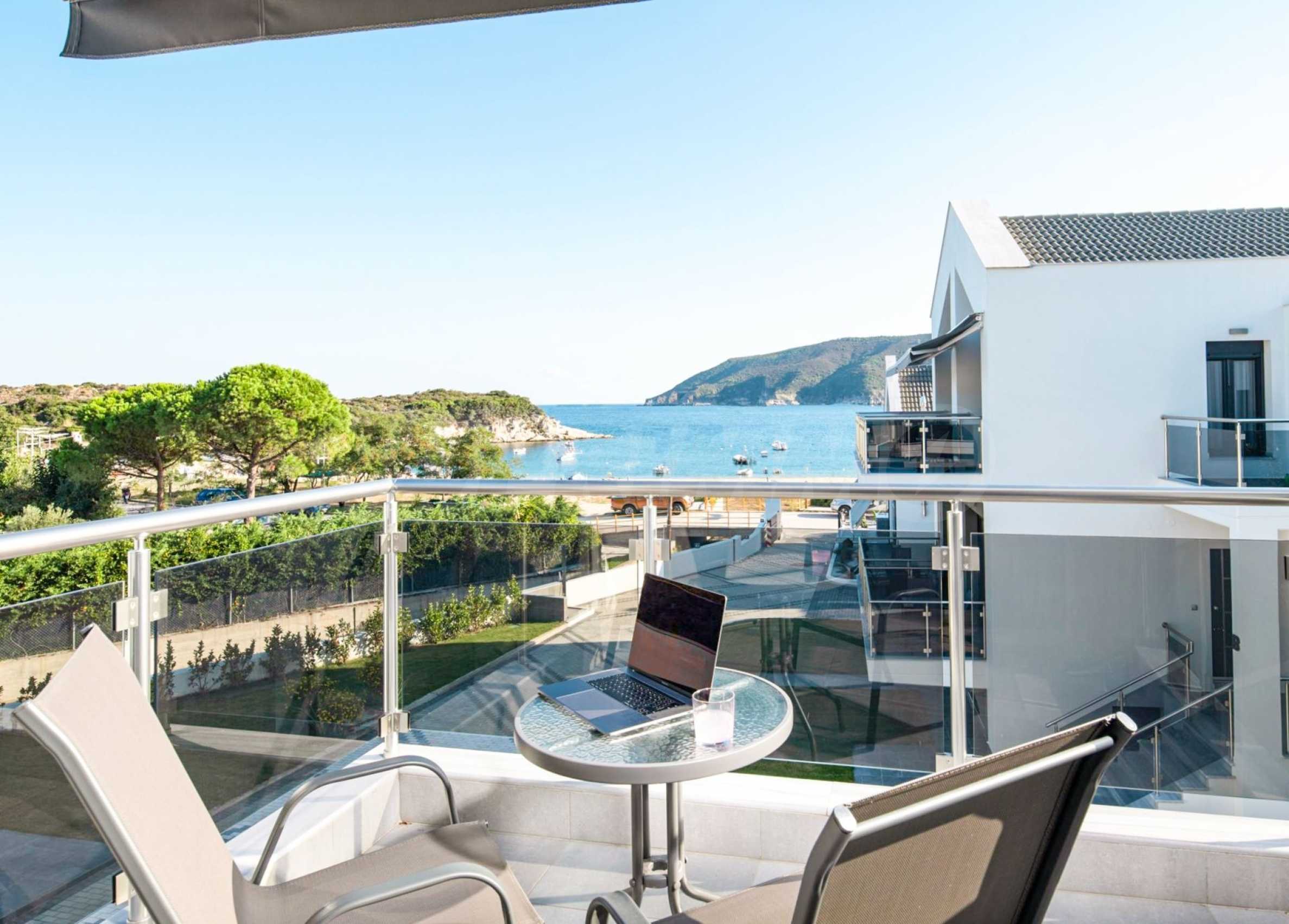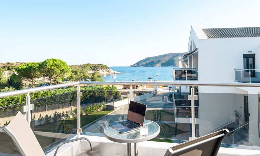 Der Entspannungsbereich: Die Schlafzimmer sind eine Oase der Intimität und so gestaltet, dass man durch die französischen Fenster immer das Meer sehen kann.
