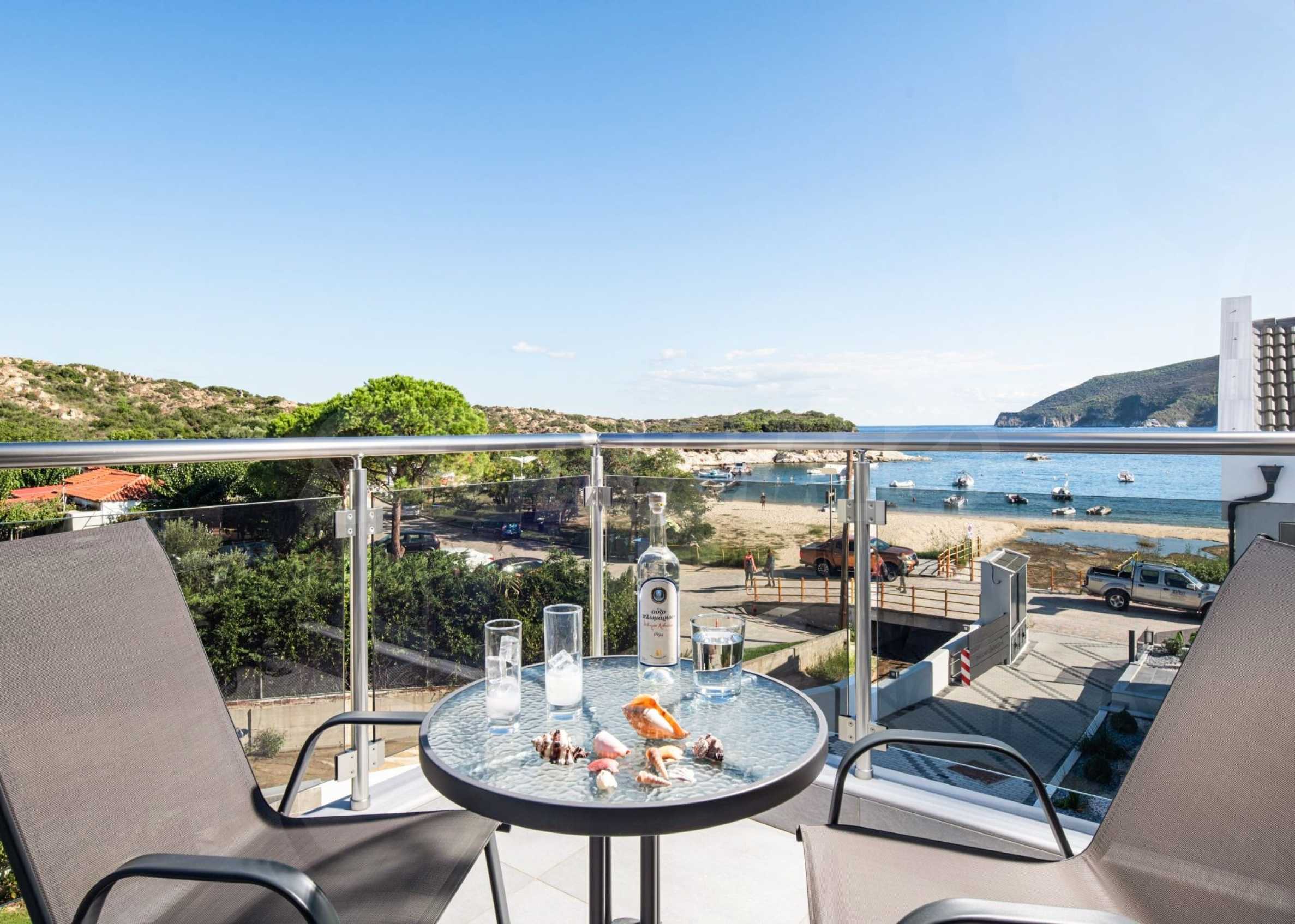 Lage in erster Reihe: Nur wenige Schritte vom goldenen Sandstrand und dem kristallklaren Wasser entfernt, bekannt als die „Perle von Sithonia“.