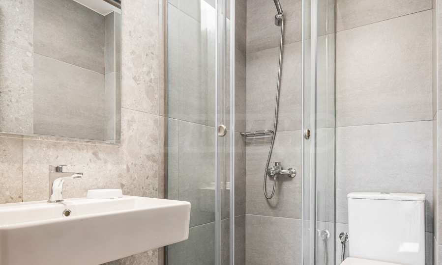 Kompromisslose Qualität: Von der Beleuchtung bis zum kleinsten Detail im Badezimmer ist hier alles dem Konzept des unbeschwerten griechischen Sommers untergeordnet.