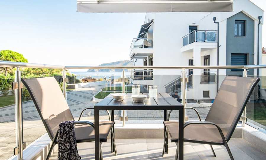 Wenn das Anwesen eine Bühne ist, dann ist die Terrasse ihr bester Rückzugsort. Hier scheint die Zeit stillzustehen. Ein Glas Ouzo auf Eis, eine Platte mit lokalen Köstlichkeiten und ein Panorama, das man mit Instagram-Filtern nicht einfangen kann – das muss man einfach selbst erleben.