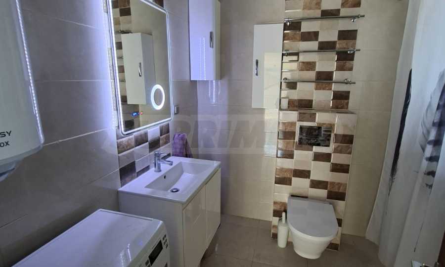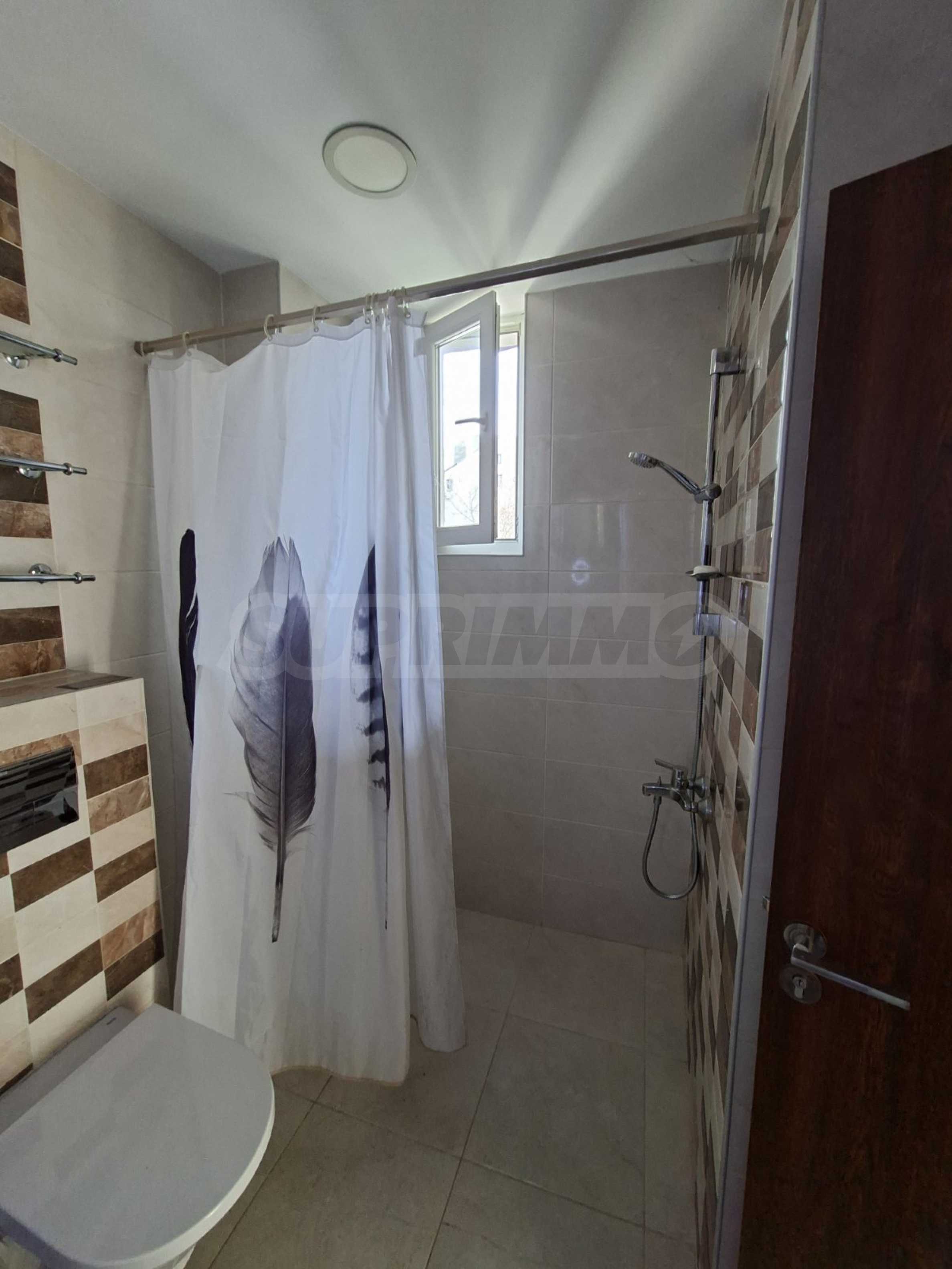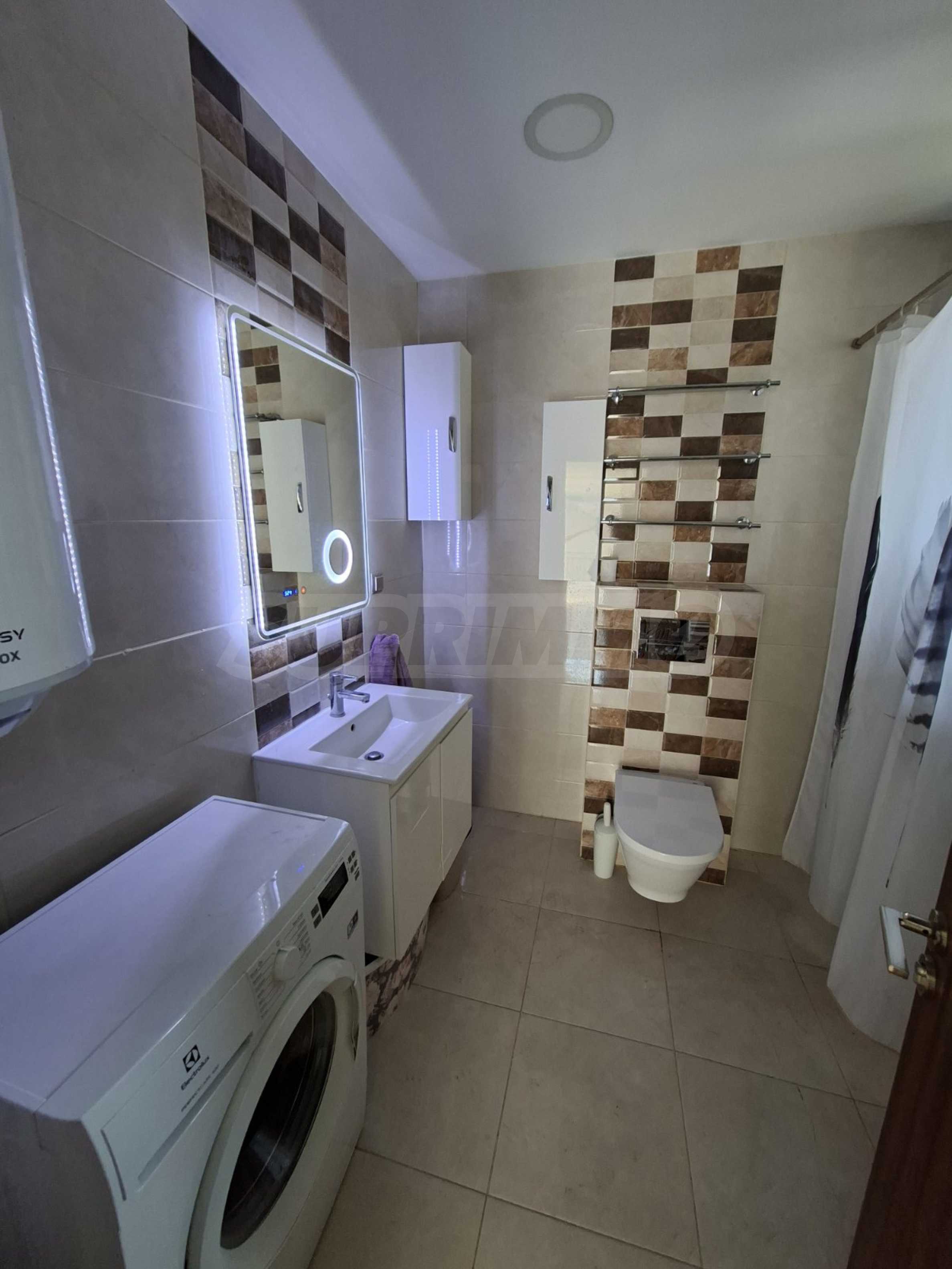 Die Küche ist mit allen notwendigen Geräten ausgestattet – Einbauküche, Kühlschrank, hochwertiger Herd mit Induktionskochfeld und modernem Design. Das Badezimmer verfügt über eine Waschmaschine und einen Warmwasserbereiter.