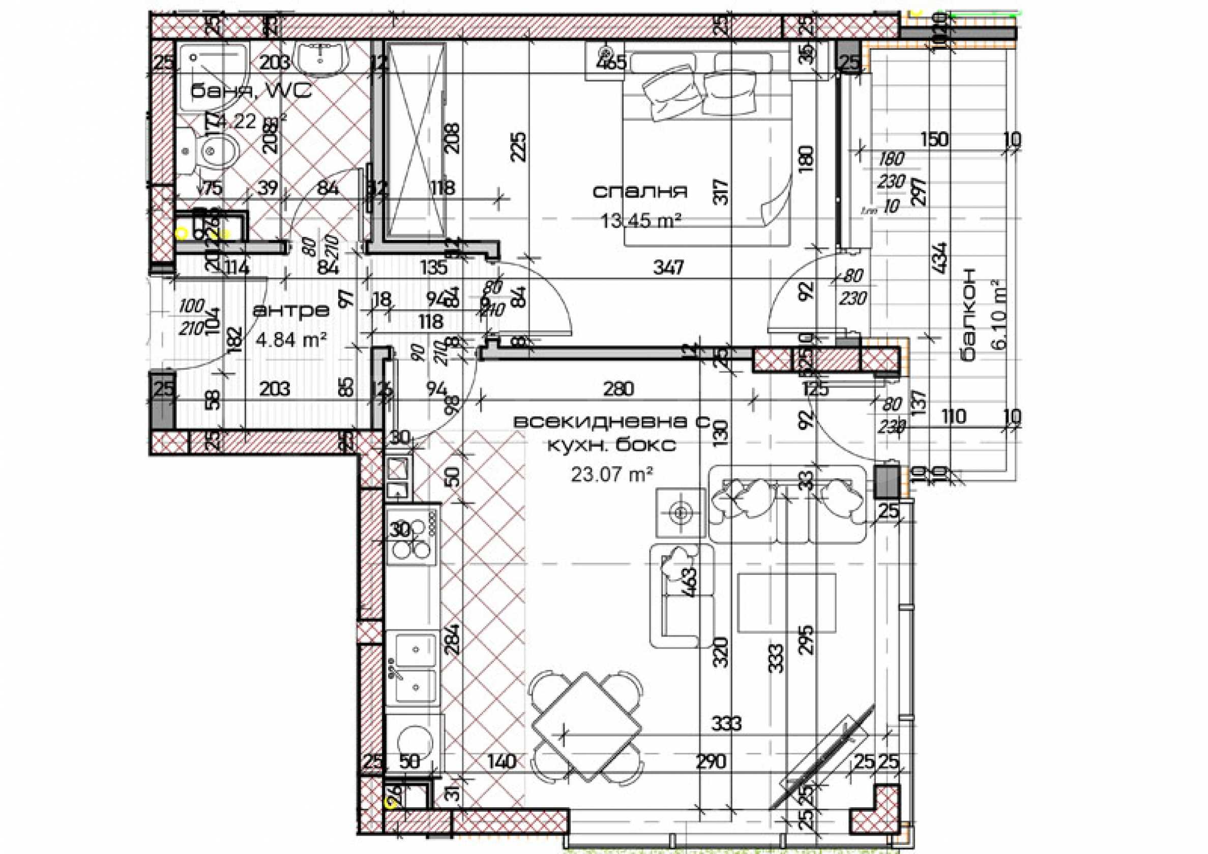 Wir präsentieren Ihnen ein komfortables Ein-Zimmer-Apartment in einem neuen Wohnkomplex mit moderner Architektur und großzügigem Konzept im Stadtteil "Mladost 1".