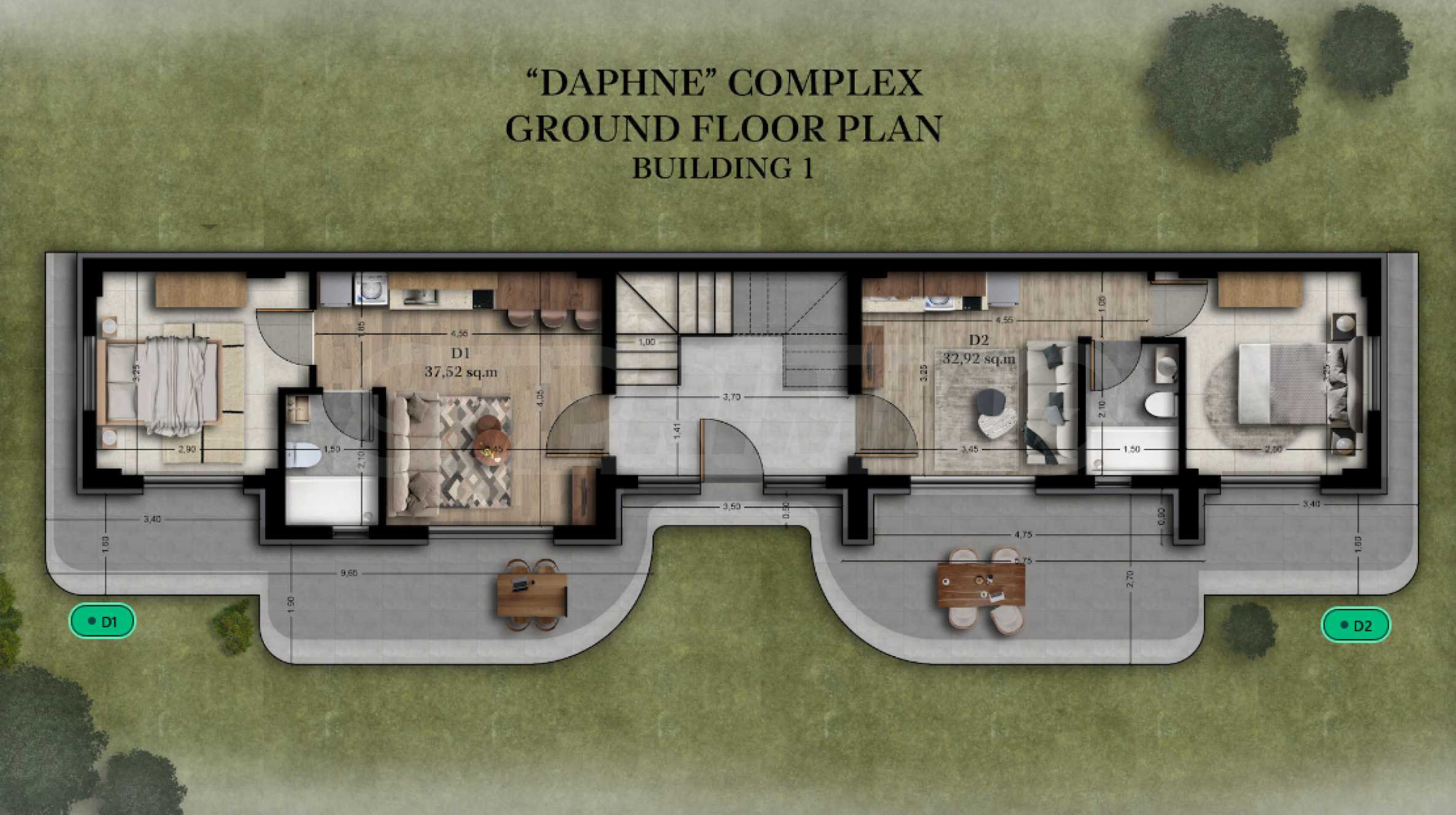 Das Projekt umfasst drei exklusive Gebäude mit jeweils vier Apartments, die ihren Bewohnern Privatsphäre und Komfort bieten. Alle Apartments werden schlüsselfertig verkauft – inklusive Eingangs- und Innentüren, Bodenbelägen, Beleuchtung, Einbauküchen und komplett ausgestatteten Badezimmern. So können Sie sofort einziehen oder die Wohnungen vermieten. Die üppig gestaltete Grünanlage rund um die Gebäude trägt zu einer harmonischen und entspannenden Atmosphäre bei.