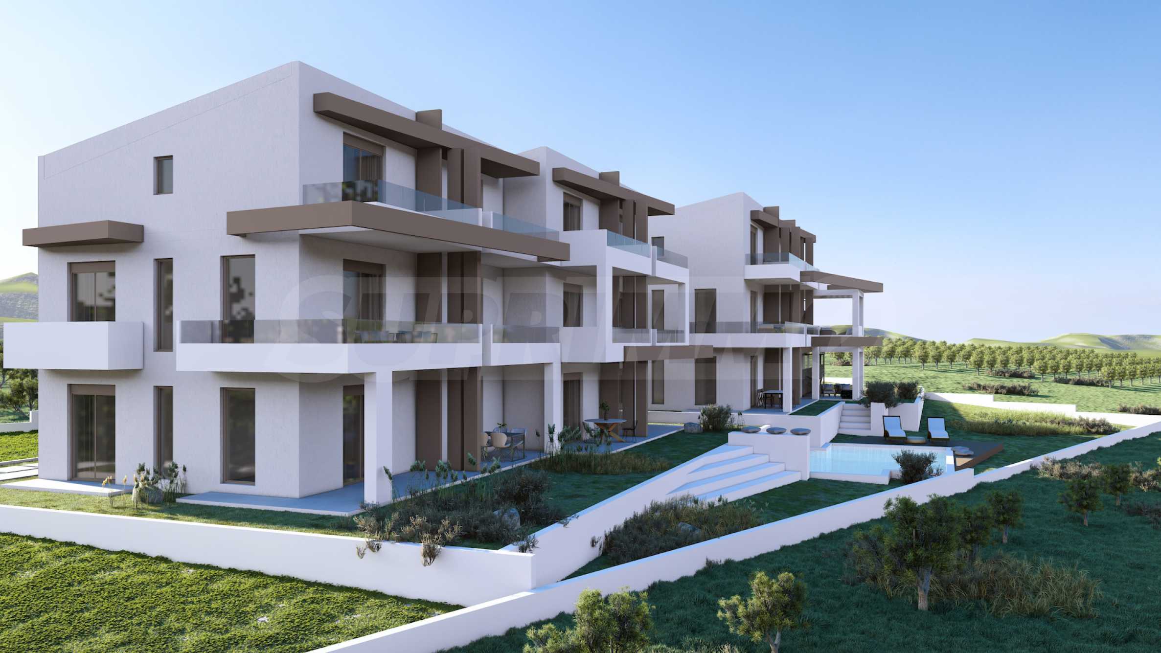 Der Komplex ist als exklusive Wohnanlage mit Fokus auf Privatsphäre und Komfort konzipiert und besteht aus zwei Gebäuden mit insgesamt 13 Apartments. Der Innenhof verfügt über einen Gemeinschaftspool und ist von wunderschön angelegten Gärten umgeben, die den Bewohnern eine angenehme und entspannende Atmosphäre bieten.