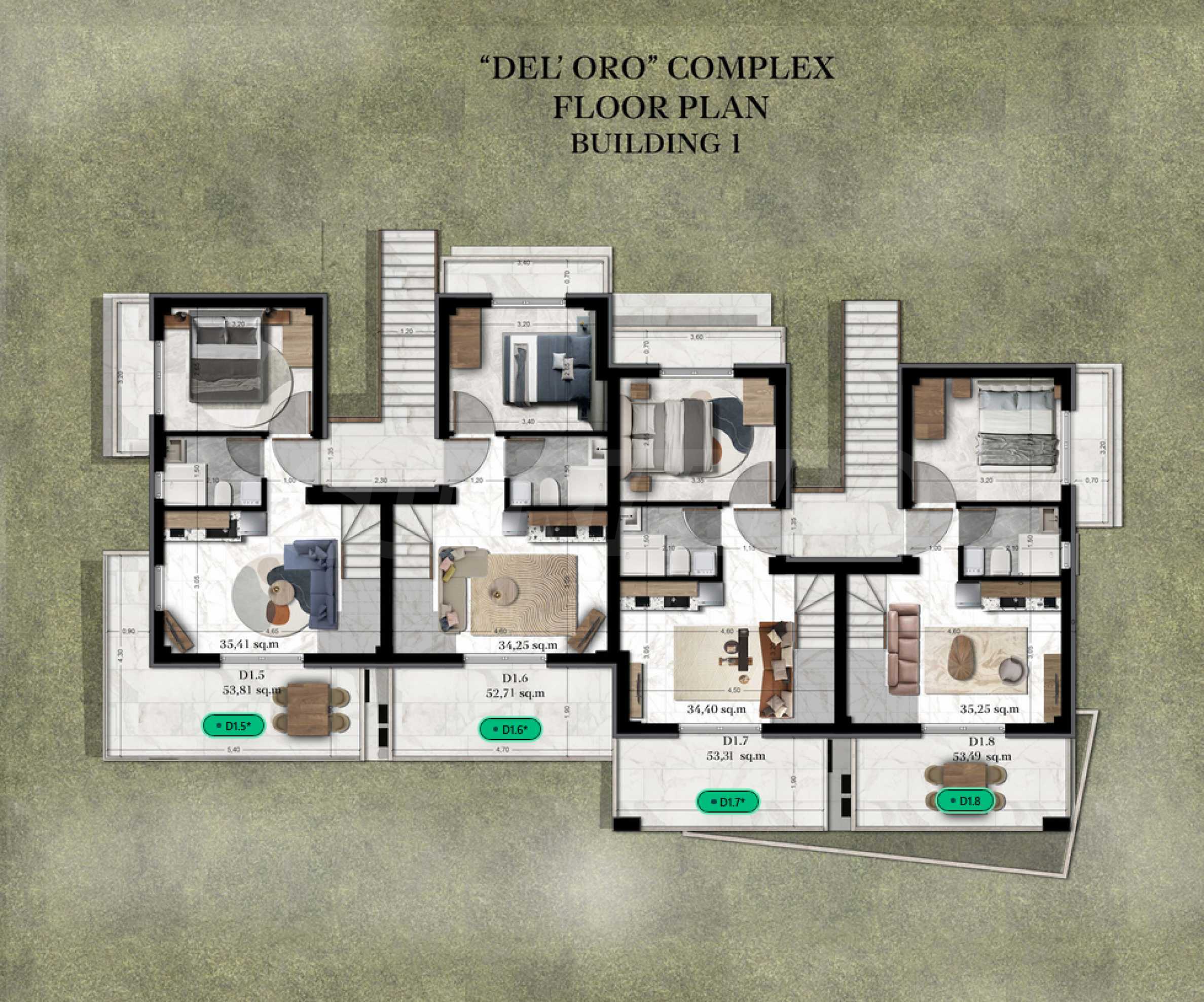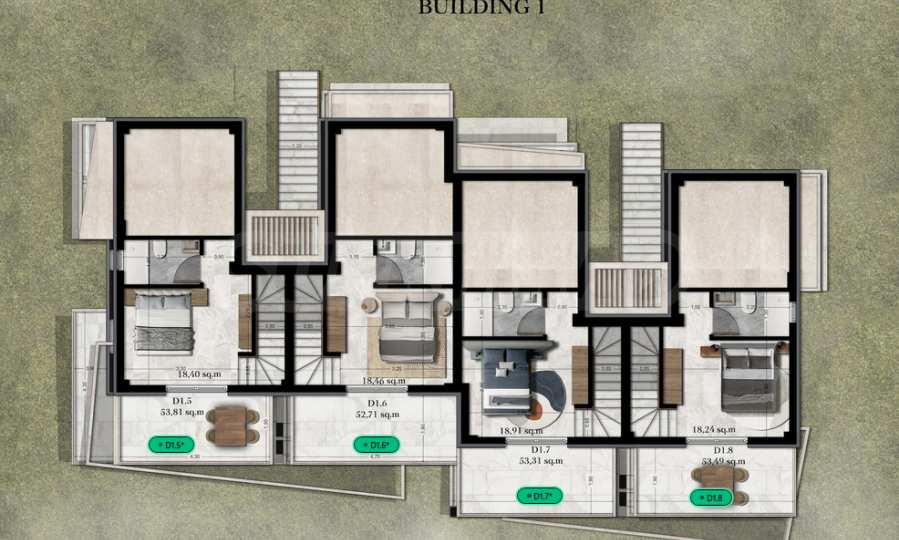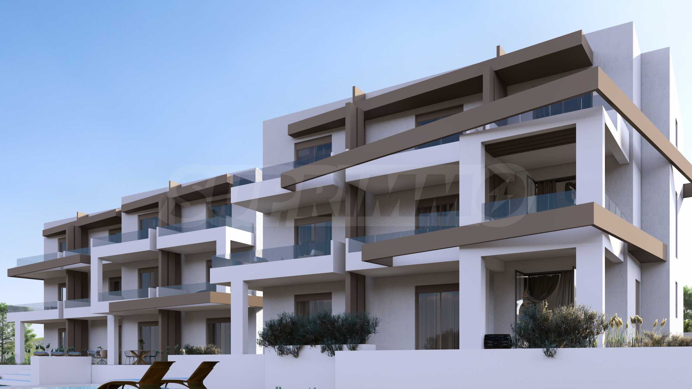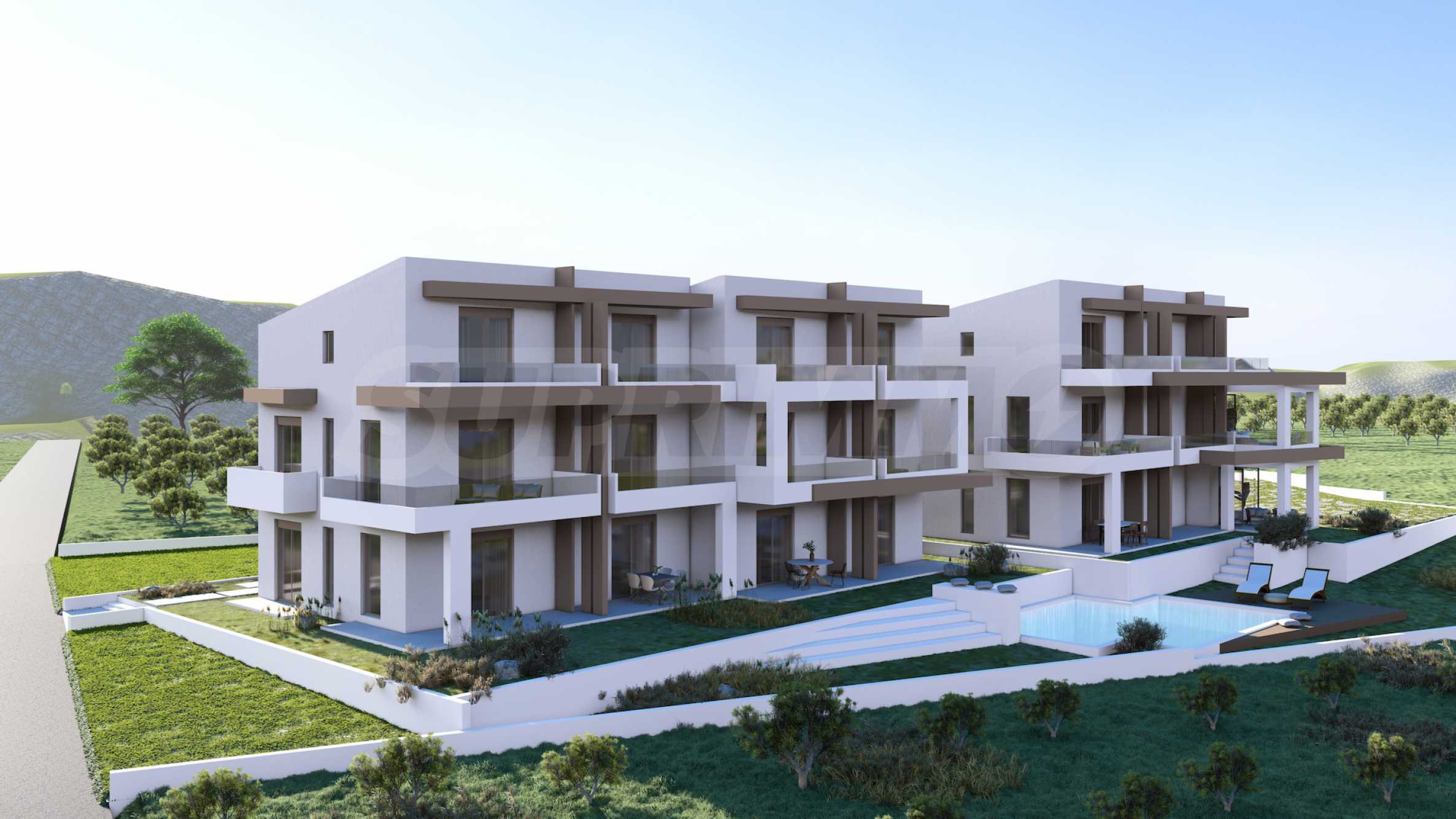 Der Komplex ist als exklusive Wohnanlage mit Fokus auf Privatsphäre und Komfort konzipiert und besteht aus zwei Gebäuden mit insgesamt 13 Apartments. Der Innenhof verfügt über einen Gemeinschaftspool und ist von wunderschön angelegten Gärten umgeben, die den Bewohnern eine angenehme und entspannende Atmosphäre bieten.