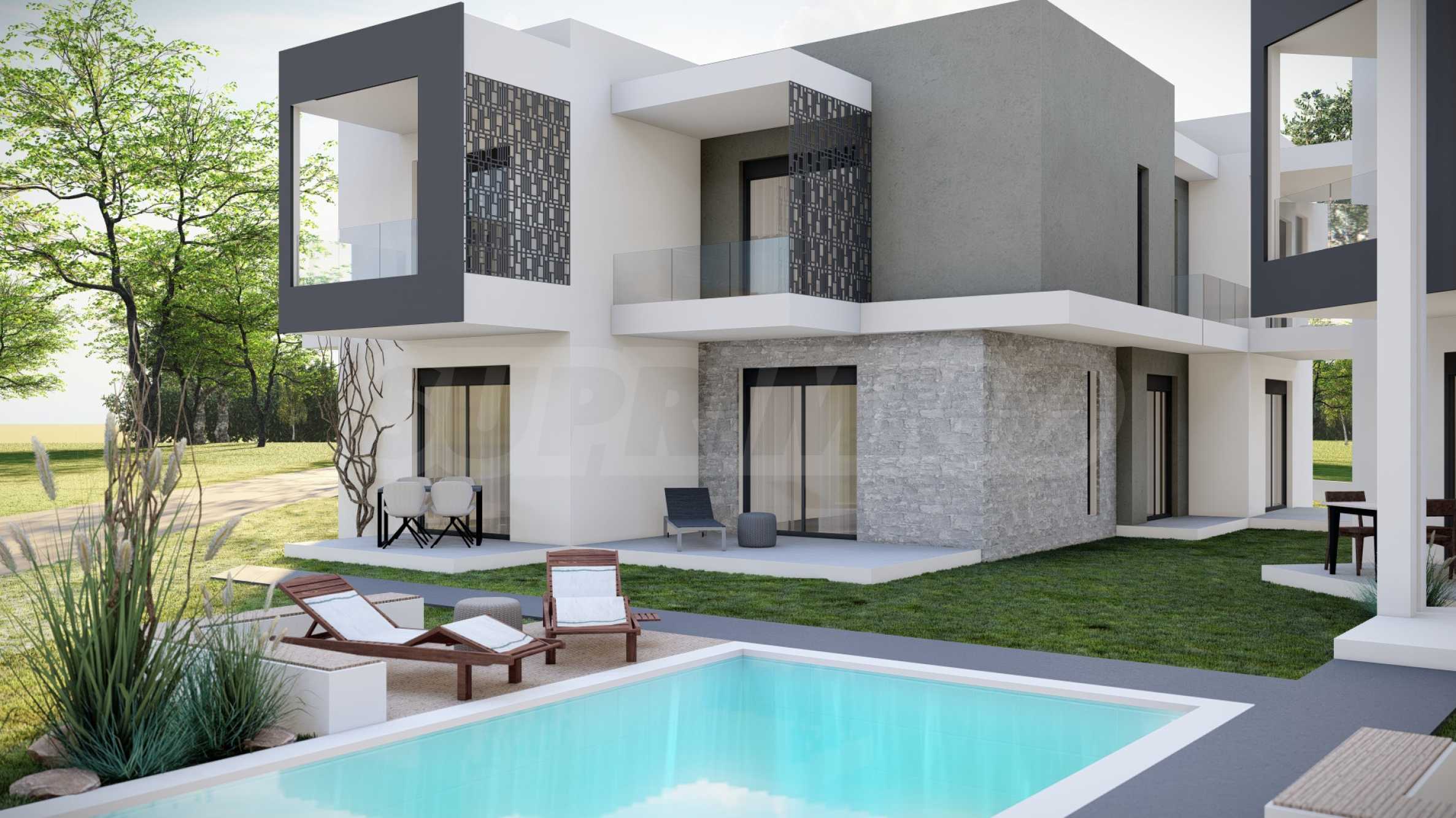 Aura ist ein exklusiver Wohnkomplex, bestehend aus vier eleganten Gebäuden mit insgesamt 18 Apartments und einer Maisonette-Wohnung. Er wurde mit viel Liebe zum Detail und einem harmonischen Zusammenspiel von Architektur und Natur gestaltet. Die Fassade besticht durch klare Geometrie, gerade Linien und sorgfältig ausgewählte dekorative Akzente, die ihr einen unverwechselbaren Charakter verleihen und sie in der umgebenden Landschaft hervorheben.