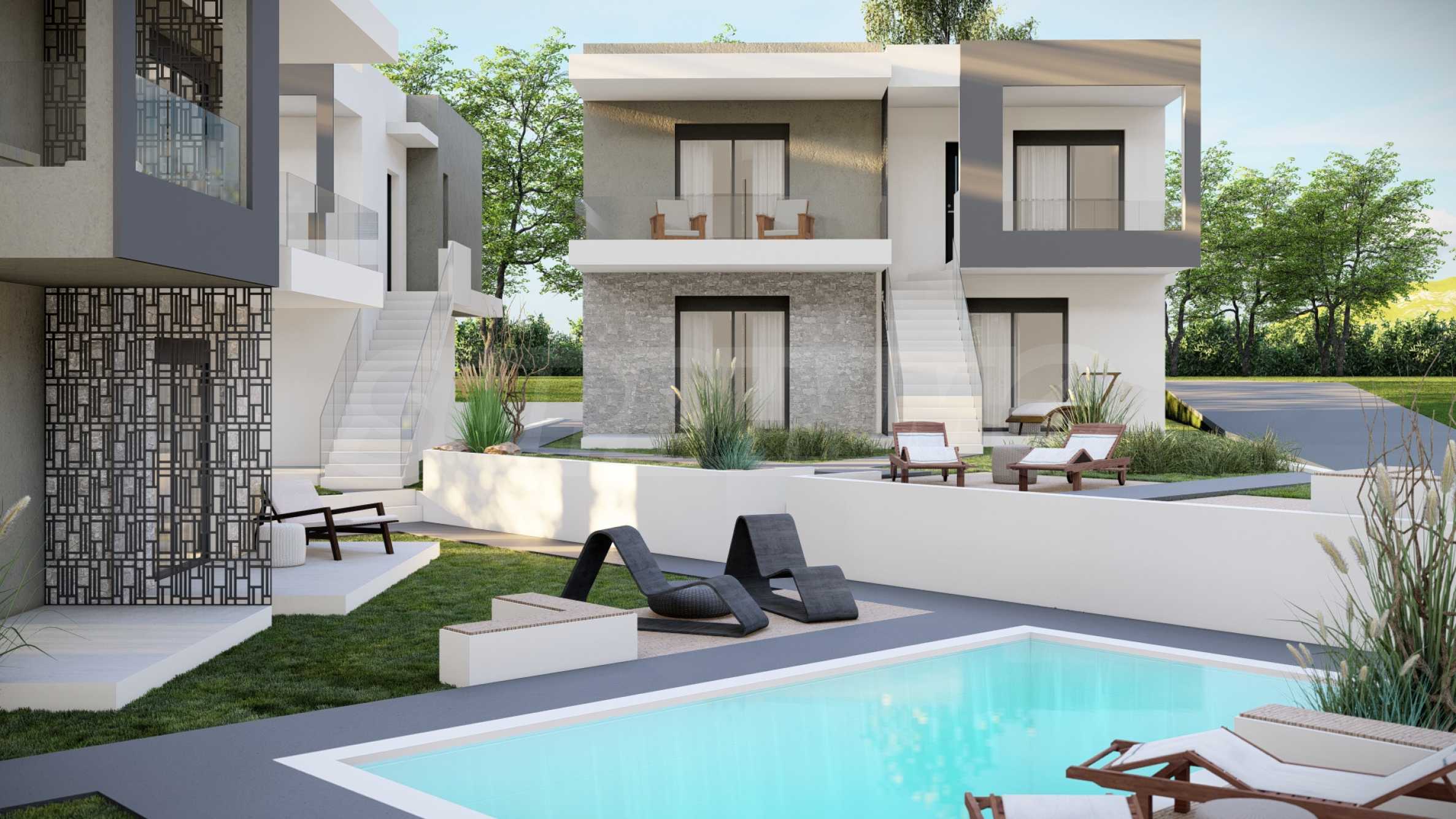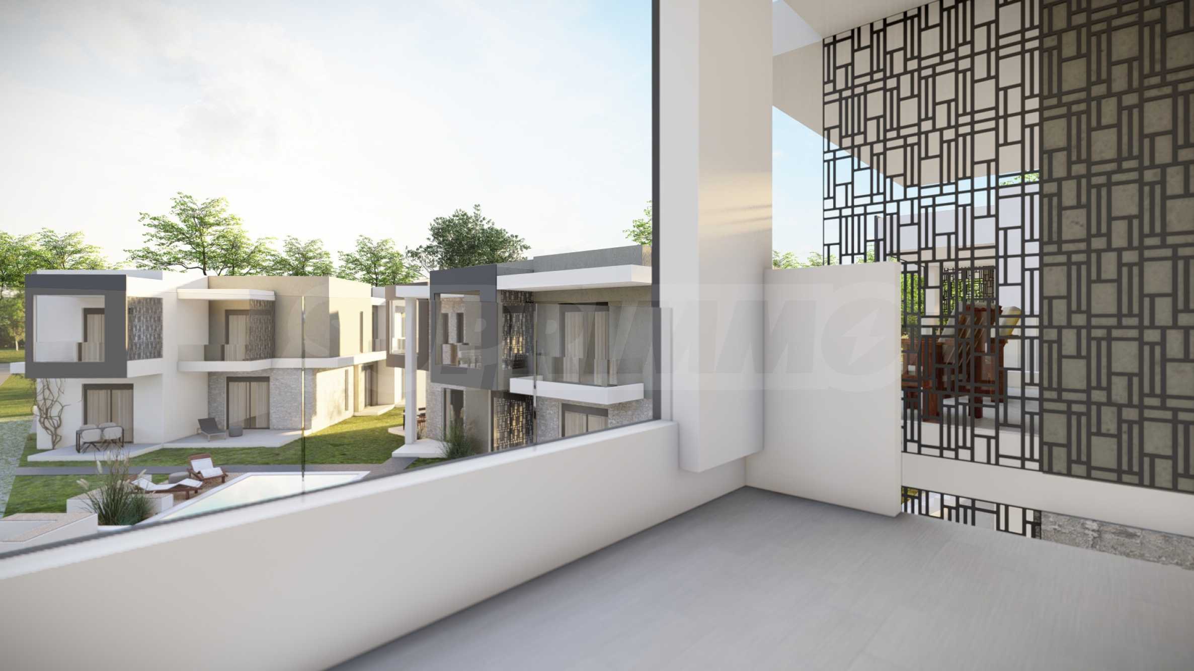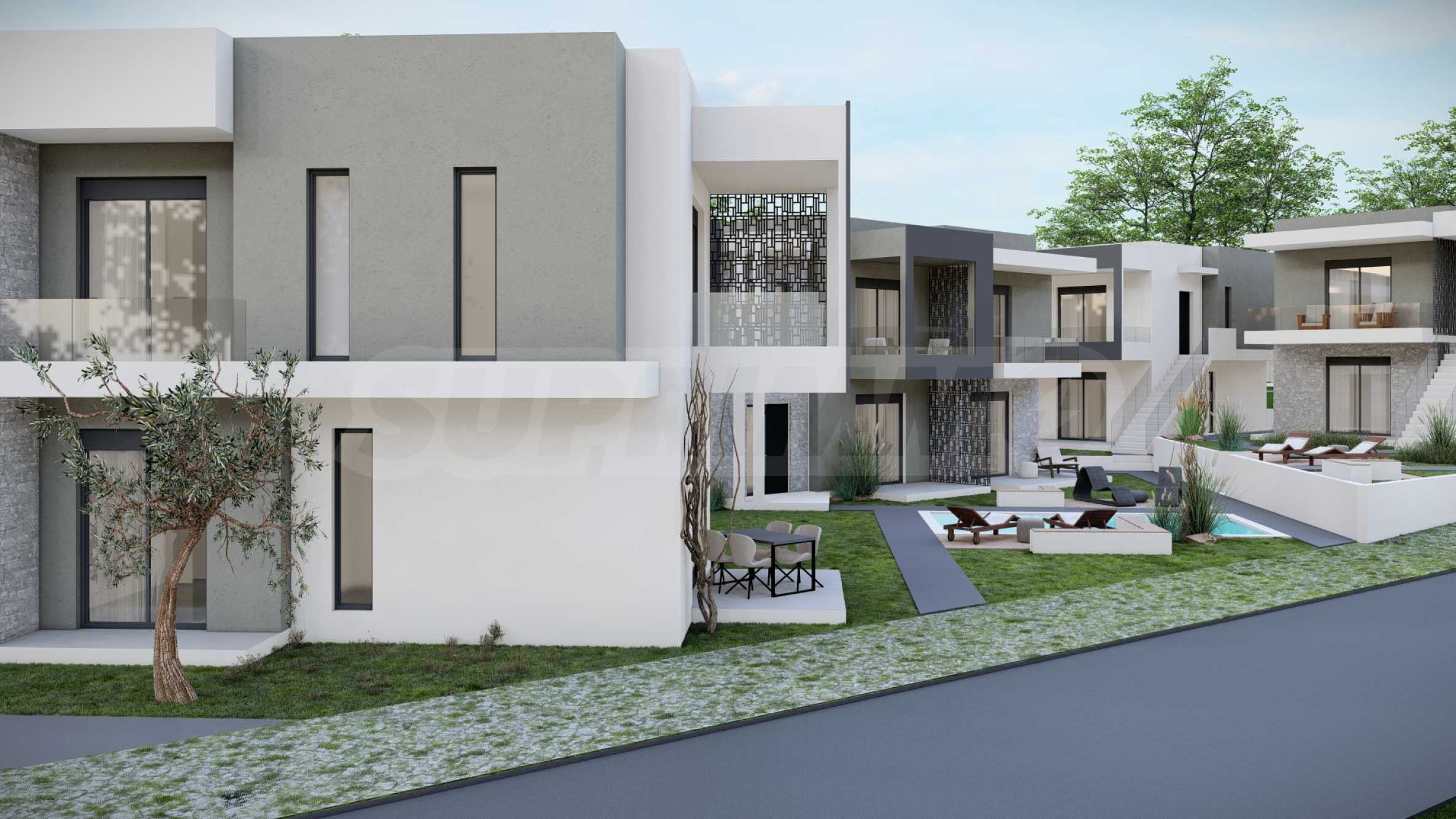 Aura ist ein exklusiver Wohnkomplex, bestehend aus vier eleganten Gebäuden mit insgesamt 18 Apartments und einer Maisonette-Wohnung. Er wurde mit viel Liebe zum Detail und einem harmonischen Zusammenspiel von Architektur und Natur gestaltet. Die Fassade besticht durch klare Geometrie, gerade Linien und sorgfältig ausgewählte dekorative Akzente, die ihr einen unverwechselbaren Charakter verleihen und sie in der umgebenden Landschaft hervorheben.