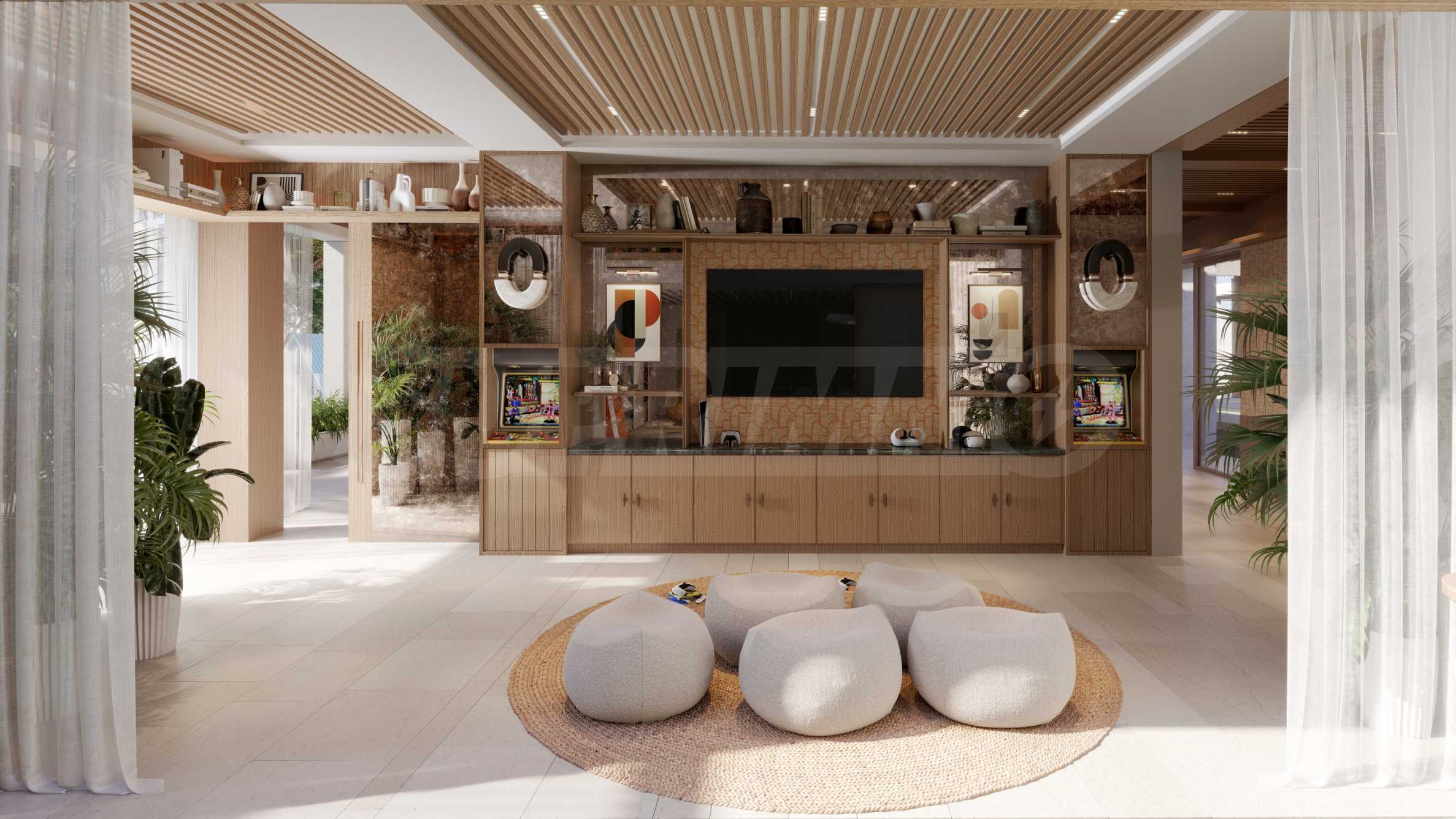 Die gestalteten Grünflächen, schattigen Terrassen und sorgfältig angelegten Gärten ergänzen das Gesamtgefühl von Ruhe und Harmonie und machen jeden Winkel der Anlage zu einem Ort der Entspannung, inspiriert von der Nähe zum Meer.