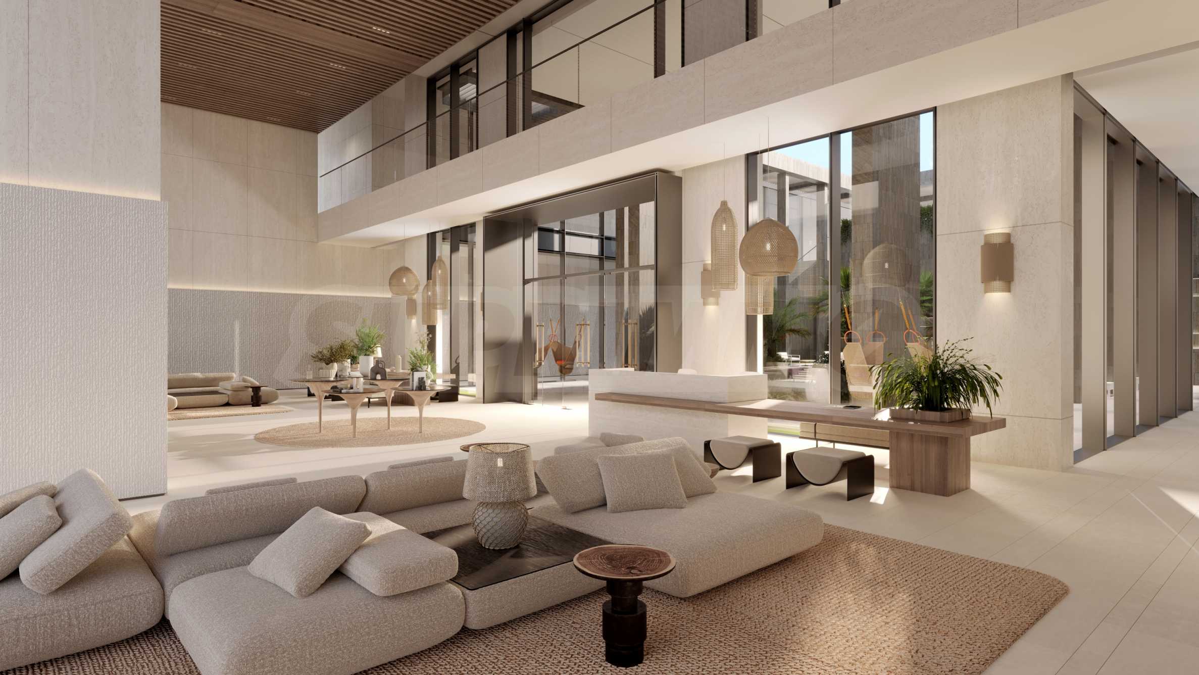 Die Lobby empfängt Sie mit einem Gefühl von Leichtigkeit und Eleganz – durchflutet von natürlichem Licht, schafft sie eine harmonische Verbindung zwischen dem Innenraum und der maritimen Umgebung draußen.